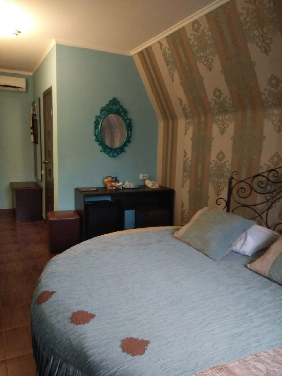 Были проездом в этой гостинице. Ночевали 2 ночи. На самом деле, все соответствует описанию достаточно чисто но! Постельное белье-такое ощущение, что кто-то на нем поспал до нас. Запах хлорки был такой, что даже на 2ой день она не выветрилась. Будить готовы, что машина будет стоять в кармане у гостиницы. Своей парковки нет. Кондиционер работал.
