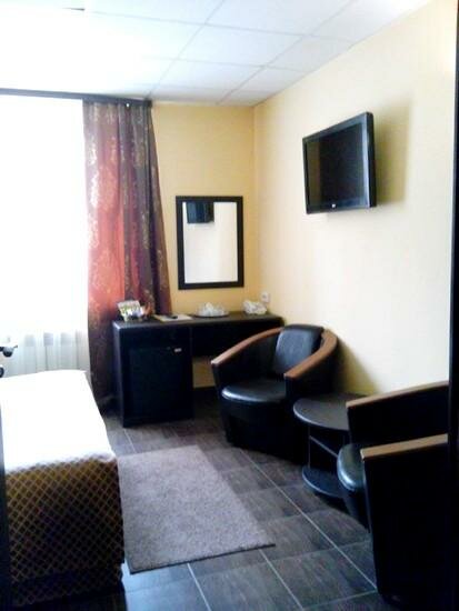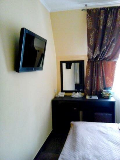 Доброжелательный персонал. Мой поезд прибыл 23.38, так получилось, что я забронировал Анжелу на следующие сутки, а не как приехал. Когда я пришел в Анжелу, мне сказали, что мест нет, пришлось идти в эту гостиницу (и слава Богу). Мне досталась единственная оставшаяся комната Crazy room. Барышня на ресепшене предложила комнату, только обитую красным, и посмеялась, когда я у нее спросил, про красный материал обивки… Так в номере чистенько есть душ, туалет. Посторонних запахов нет. Дали документы о проживании (т.к. был в командировке от МО). Лучше бы я в ней и остался, т.к. Анжела не смотря на свои три звезды это нечто… Правда остается открытым вопрос оплатит ли МО Crazy room