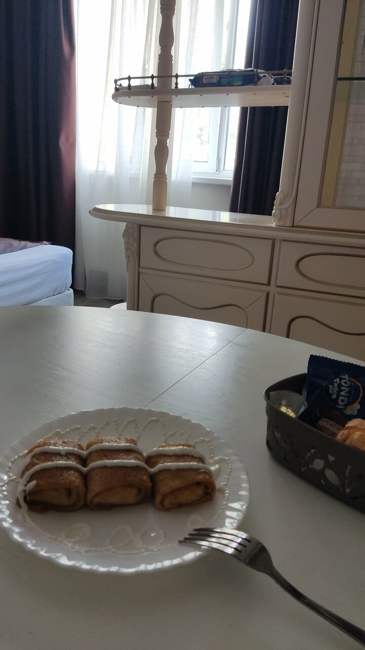 Очень уютный мини-отель, вежливый персонал, все чистенько и опрятненько. Мы были проездом на одну ночь, нас приняли с маленьким песиком без всяких проблем. Утром накормили вкусным завтраком, на выбор было: яичница/блины с мясом/блины с творогом + булочка с плавленым сыром, чокопай и чай/кофе. Есть своя парковка. Зарядились и поехали дальше. Спасибо, всем сотрудникам за душевный прием.
