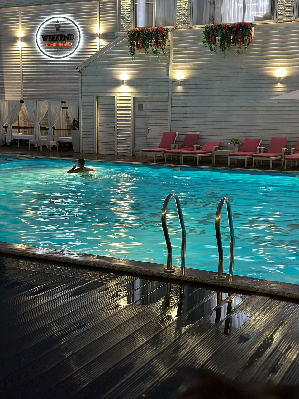 Приглашаем Вас посетить аква-зону в Загородном клубе Weekend.При посещении бассейна в мае - веранда в подарок!Купание будет комфортно в любую погоду.Температура воды в бассейнах: взрослый - 27 градусов, детский - 29 градусов.