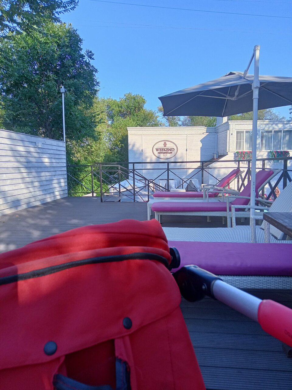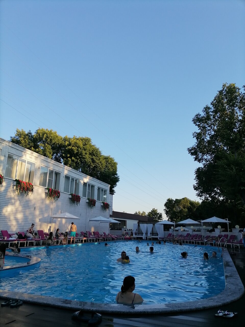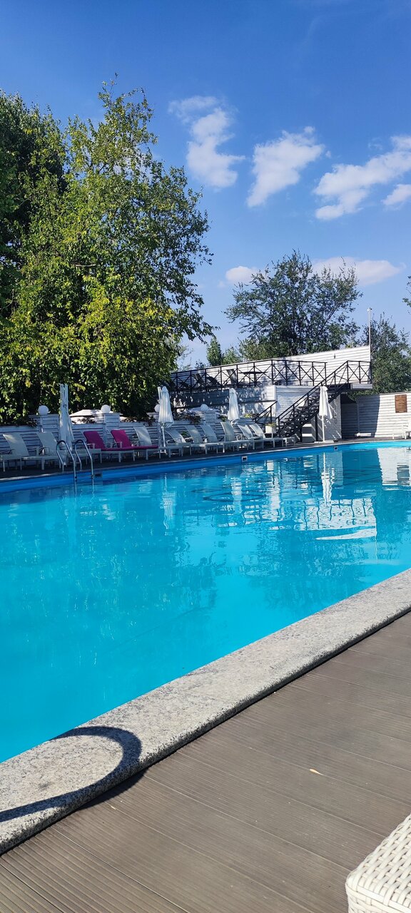 Отличная территория, ухоженная, есть беседки, теннис, бассейн, ресторан, кафе. Можно заказать еду на бассейн. Из минусов по выходным много людей, но сейчас так везде(