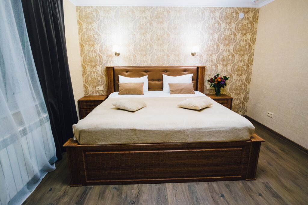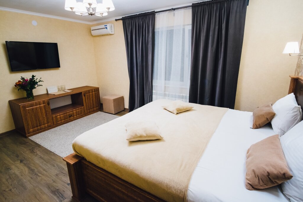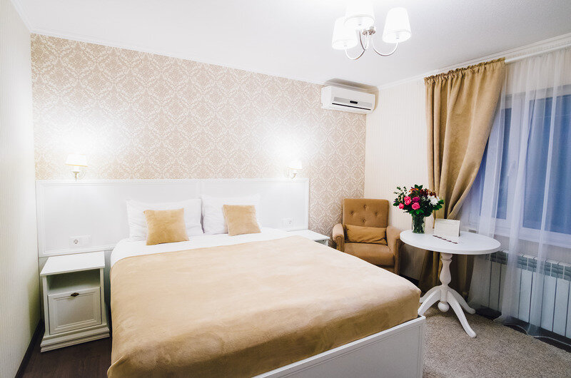 Удобства: — Просторные номера с кондиционером, Wi-Fi, телевизором, холодильником и звукоизоляцией. — Два ресторана, кафе, бар у бассейна и летняя веранда. — Крытый и открытый бассейны, аквапарк, сауна, джакузи, баня. — Детская площадка, бассейн для детей, игровые зоны. — Бесплатная парковка, конференц-зал, банкетные услуги. — Развлечения: дискотека, настольный теннис, пляжный волейбол, вечерние программы.