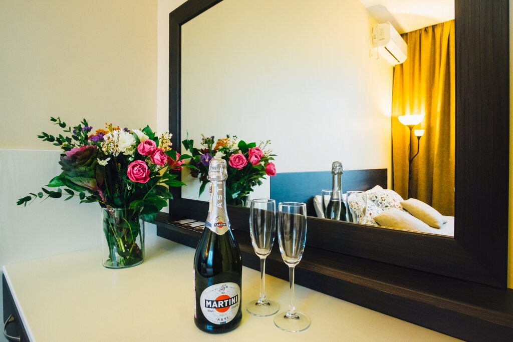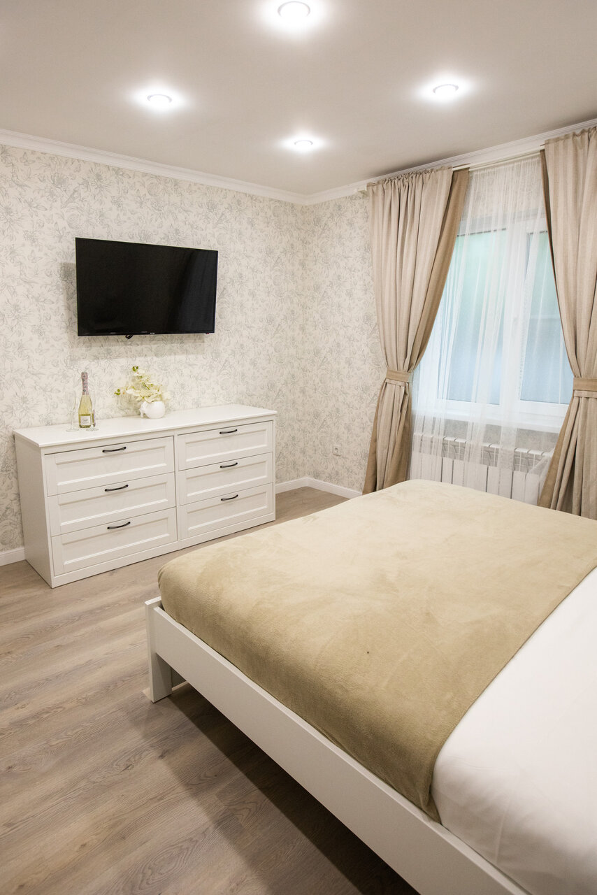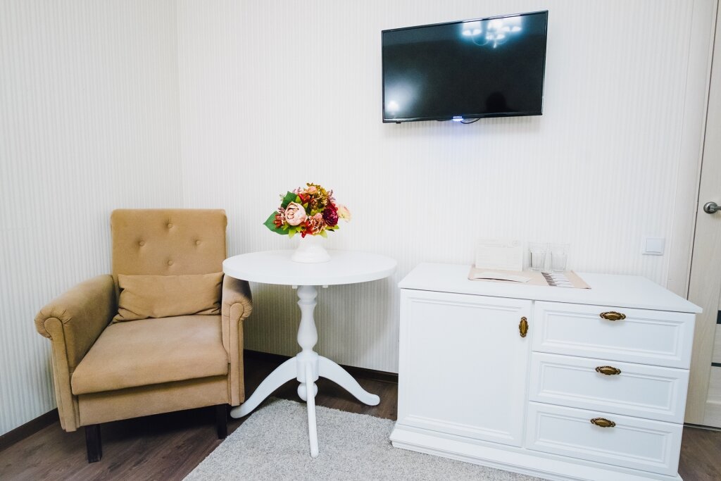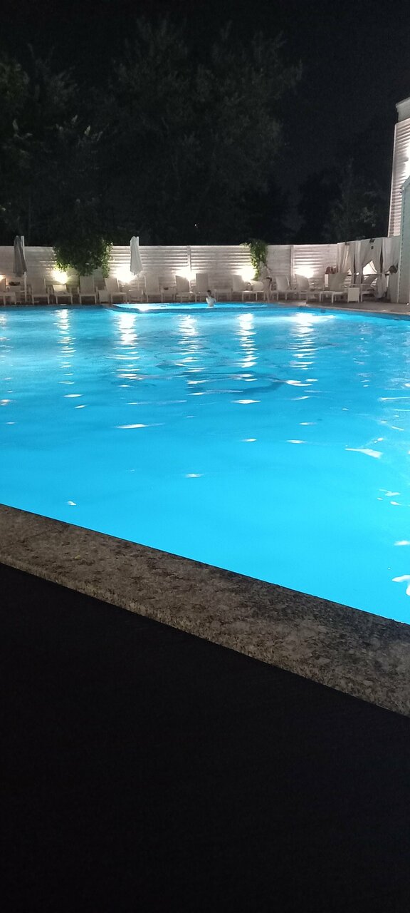 Брали номер на сутки, стандартно,без тапочек,халатов,телевизор есть в номере,но шнур не дотягивает,как бы и нечего его смотреть)) Территория небольшая,красивая ухоженная.Бассейн чистый,много лежаков,всем хватает. Еда в ресторане вкусная,обслуживание тоже хорошее,все приветливы)) Ещё поедем)