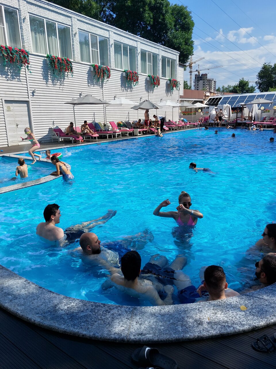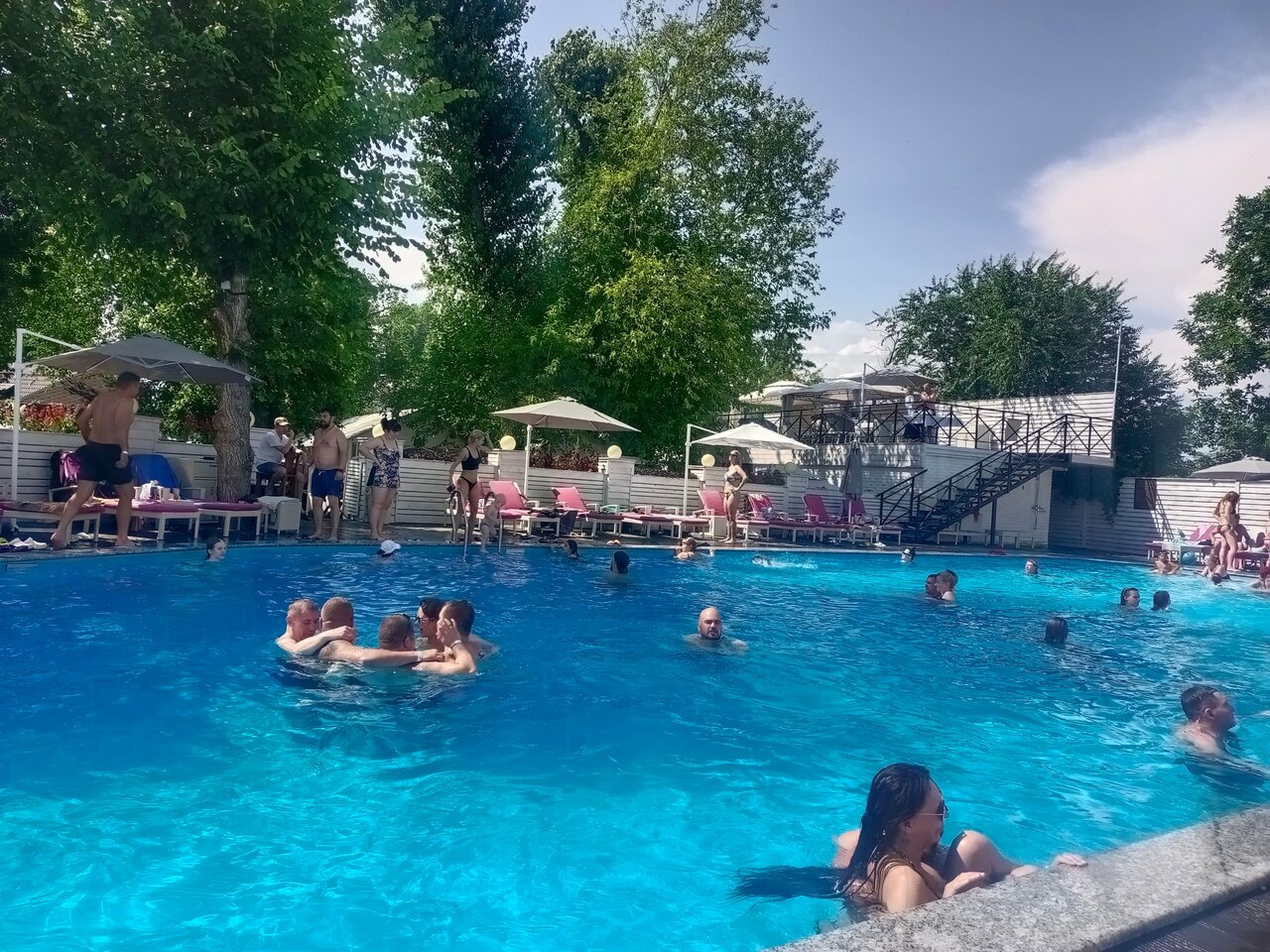 Пафосное заведение. Небольшой но приличный бассейн. Беседки с холодильниками к каждой беседке и газоны, все прилично. Но! За вход 2 косаря для среднего класса не дешево, а если с семьей, так ценник выскакивает прилично. В еще покушать …..