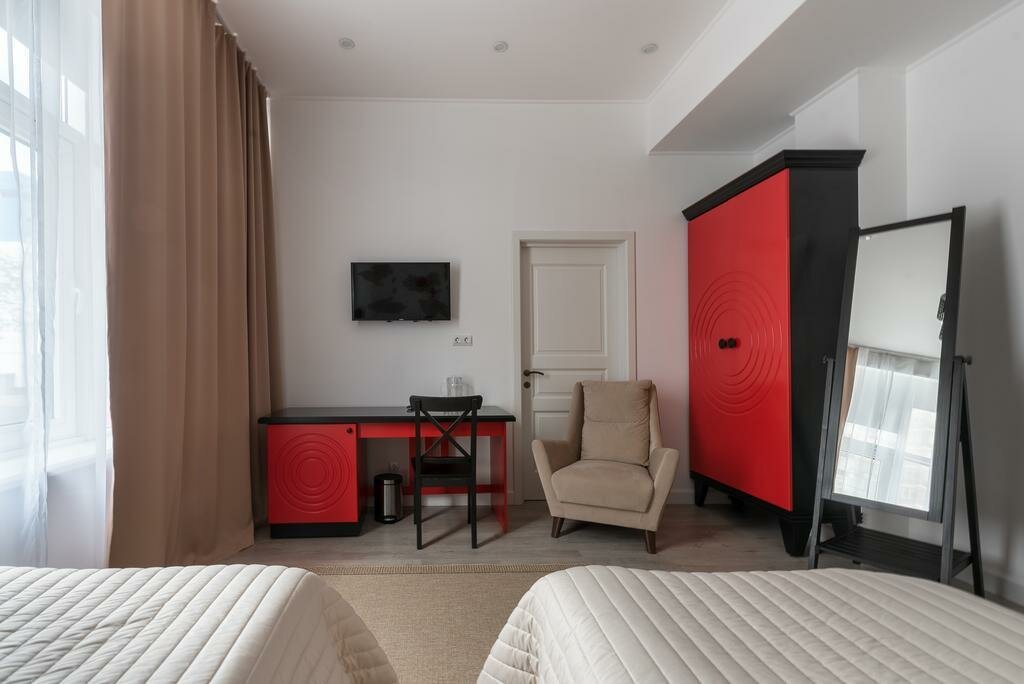 - Чистые и приличные номера.; Отличное оформление номеров.; Уютная атмосфера.; Удобное расположение в центре города.; Разнообразие стилей номеров.