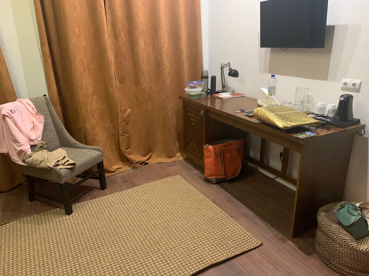 Отель хороший, номера чистые и комфортные. Завтраки вкусные, но нужно заказывать заранее. Персонал вежливый и отзывчивый. Чистота на 5+. У нас был один существенный ньюанс, честно говоря не понимаю как такое могло быть, в таком отеле, но в нашем номере, через некоторое время после заселения, очень сильно стало ‘пахнуть’ котом, номер назывался ГРУЗИЯ, поэтому 4 звёзды.