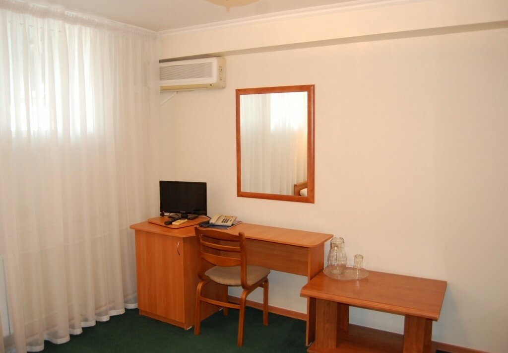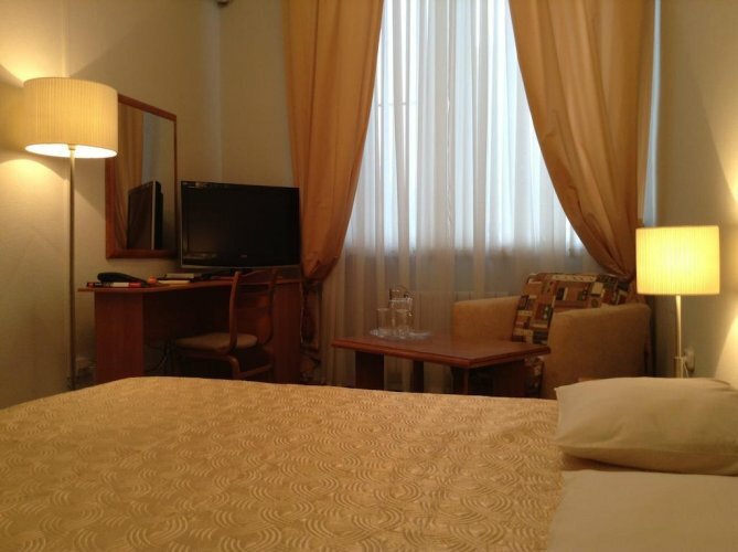 Поистине ‘совковый’ отель. Не думал что гостиница с рейтингом 8.3 на Яндексе может быть такой жуткой. Персонал дружелюбный, но все остальное оставляет желать лучшего, включая очень неприятный запах в каждом номере, грязь по всем углам, застиранную, желтую постель, на которую если только приляжешь, глаза закрывать уже не хочется, тк неприятно. Грязные, местами чёрные шторы. На полотенцах не отстирываемые пятна. Место отнюдь не тихое, такое чувство, что рядом не ипподром, а полигон для испытаний военной техники. Цена/качество не соответствует желаемому, обдираловка. И холодильники желтые. И горячую воду надо ‘пропускать’, то есть открыть и ждать, пока она станет теплее