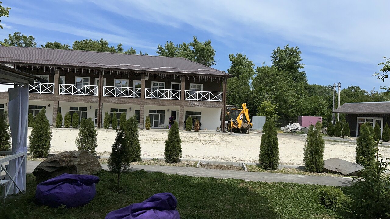 Сразу скажу, что база отдыха ещё не достроена до конца, хотя уровень комфорта на данный момент довольно высокий. И это же видимо является причиной относительно низкой цены за номер — 4000р./сутки. За эту цену вы имеете номер с туалетом, душем, телевизором, кондиционером, холодильником. Кровать большая, двухспальная, дополнительно предоставляется раскладушка. Далее. На базе есть ресторан, где предоставляют бесплатные завтраки, там же вы можете пообедать и поужинать за дополнительную плату или провести мероприятие (свадьбу, юбилей и тд). Еду из ресторана можно заказать в номер по телефону. На базе имеется достаточное количество беседок и мангалов, они бесплатные, просто нужно их вовремя занимать. Строится бассейн. Пляж небольшой и не совсем напротив базы, но это не критично. На пляже достаточно чисто, имеется волейбольная площадка. На базе тоже имеется небольшая спортивная площадка. Были там с 5 по 7 июля, нам понравилось, собираемся ещё.