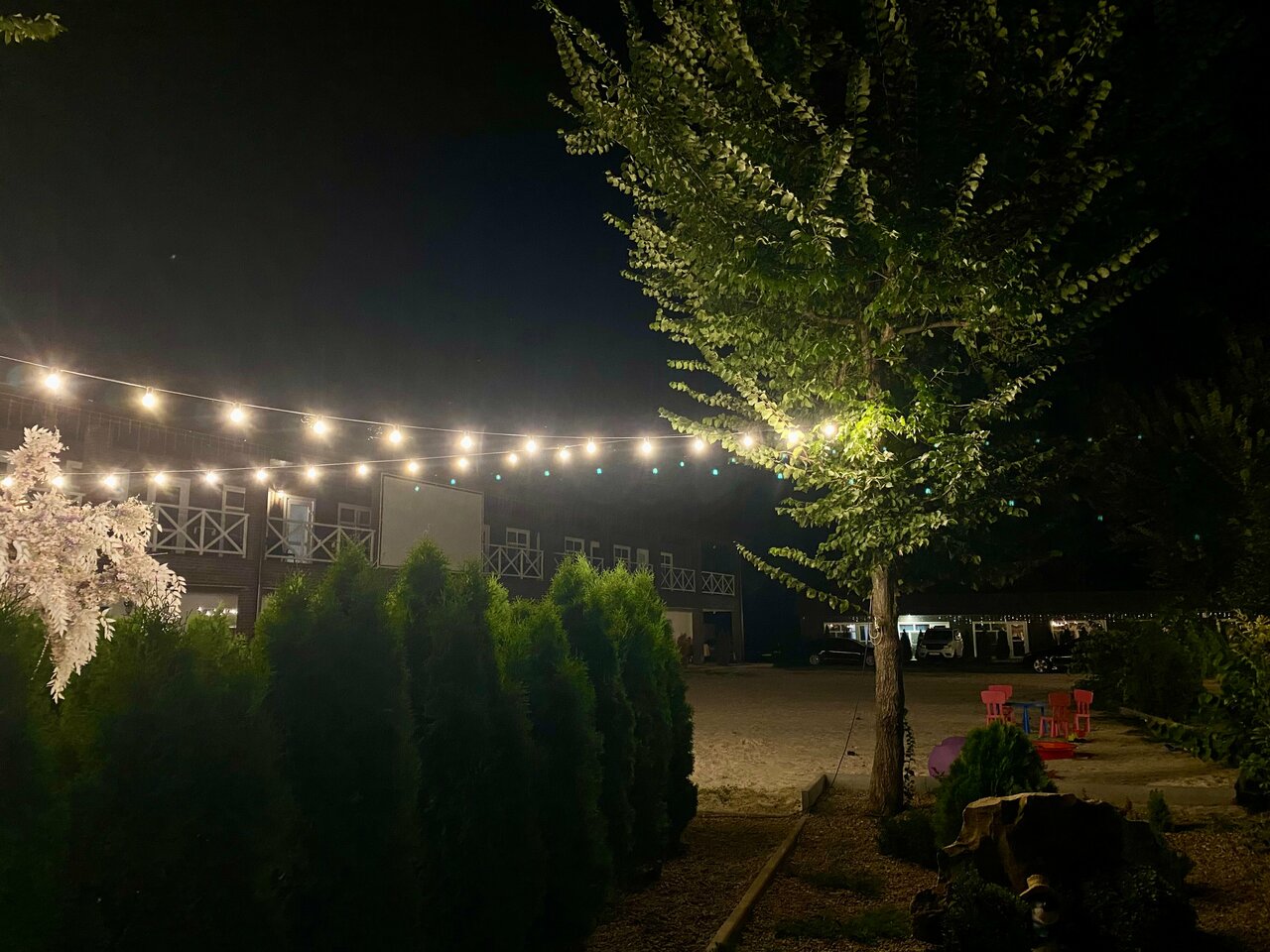 База с виду симпатичная, но на контингент 18 + ,так как музыка долбит с утра до самой ночи и снова заводится с самого утра,ни какого уважения к отдыхающим с детьми А как бонус еще по ночам устраивают салюты даже не выходя за пределы базы.Видимо хозяйке базы настолько наплевать на отдыхающих или тут играет самое главное это заработать побольше денег Ни когда больше не поеду на нее и ни кому не советую