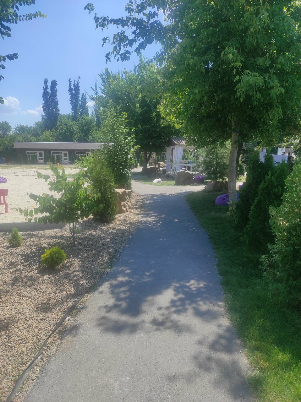 Территория маленькая, режим тишины не соблюдается, после 23:00 играла музыка, после 00:00 били салюты,разбудили маленького ребёнка, не спали всю ночь, в номере маленькие холодильники, купаться надо ходить на соседний пляж, не рекомендую! Соседняя дача намного лучше, чище и спокойнее, берег чистый и большой.