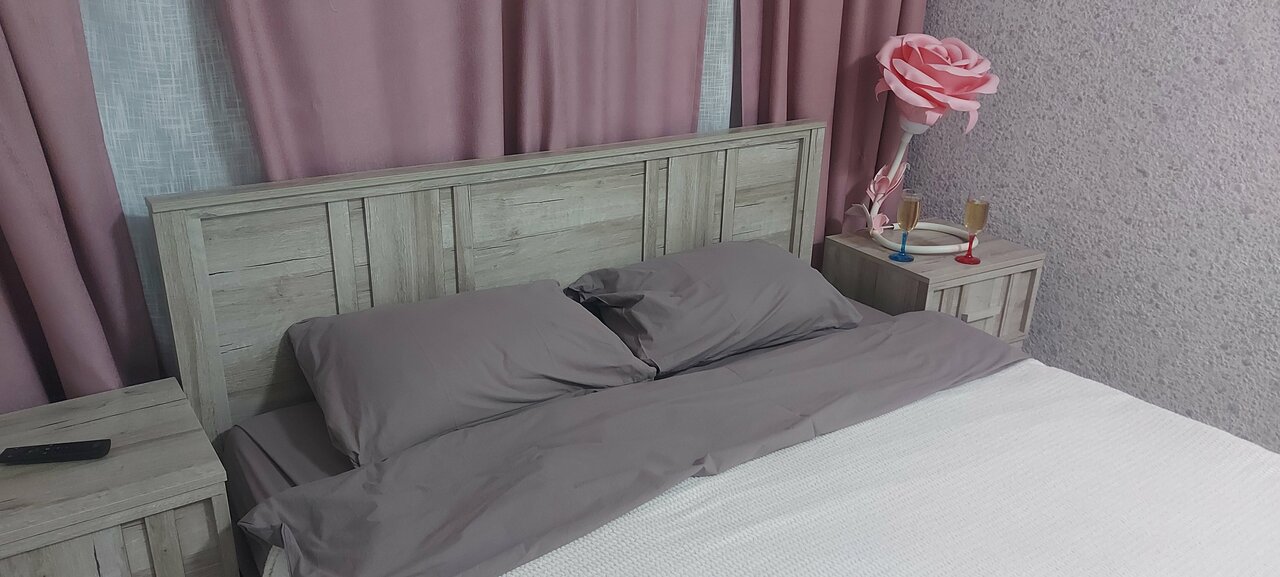 Однокомнатный двухместный номер. В номере одна двуспальная кровать и диван кровать, телевизор, бесплатный wi-fi, тумбочка, стул, стол, холодильник, вешалка для верхней одежды.