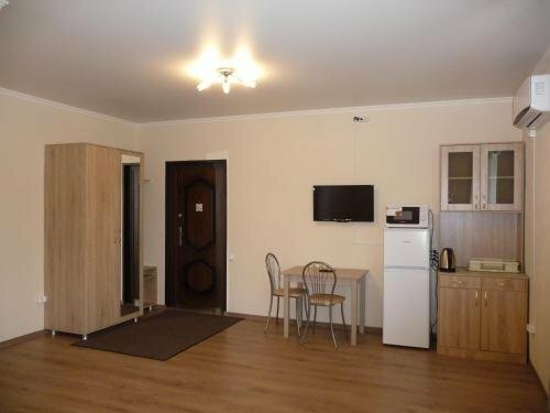 - Хорошая звукоизоляция (по некоторым отзывам).; Наличие кухонного уголка с посудой.; Наличие кондиционера, чайника, холодильника, микроволновки, телевизора, Wi-Fi.; Быстрое бронирование и фиксированные цены.; Чистота в номерах.
