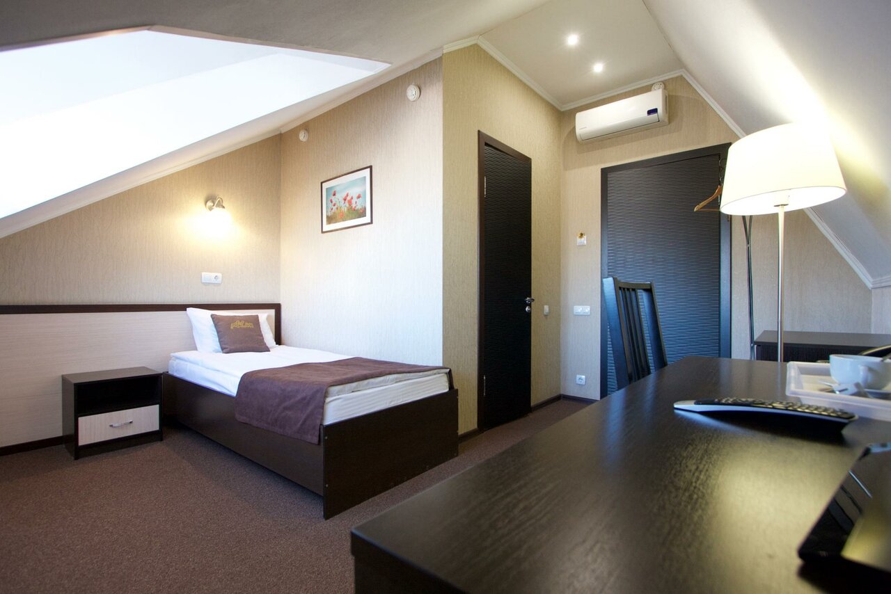 Стандартный одноместный номер. Односпальная кровать, письменный стол, телевизор с плоским экраном, холодильник, кондиционер, телефон, Wi-Fi , собственный туалет и душ, электрический чайник, фен, средства личной гигиены, тапочки, доставка блюд и напит
