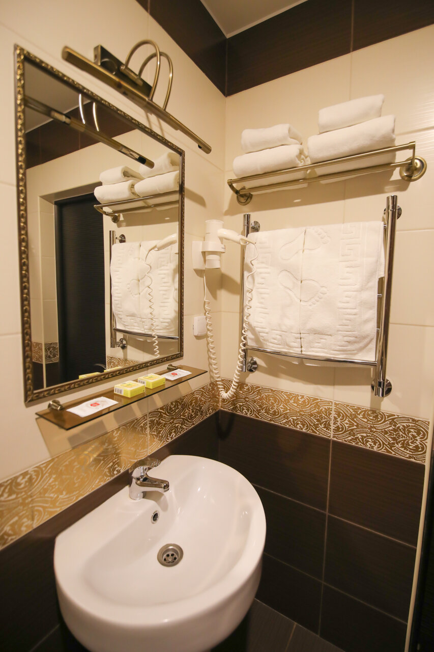 Двухместный номер повышенной комфортности. Две односпальные или одна двуспальная кровать, письменный стол, телевизор с плоским экраном, холодильник, кондиционер, телефон, Wi-Fi , собственный туалет и душ, электрический чайник, фен, средства личной ги