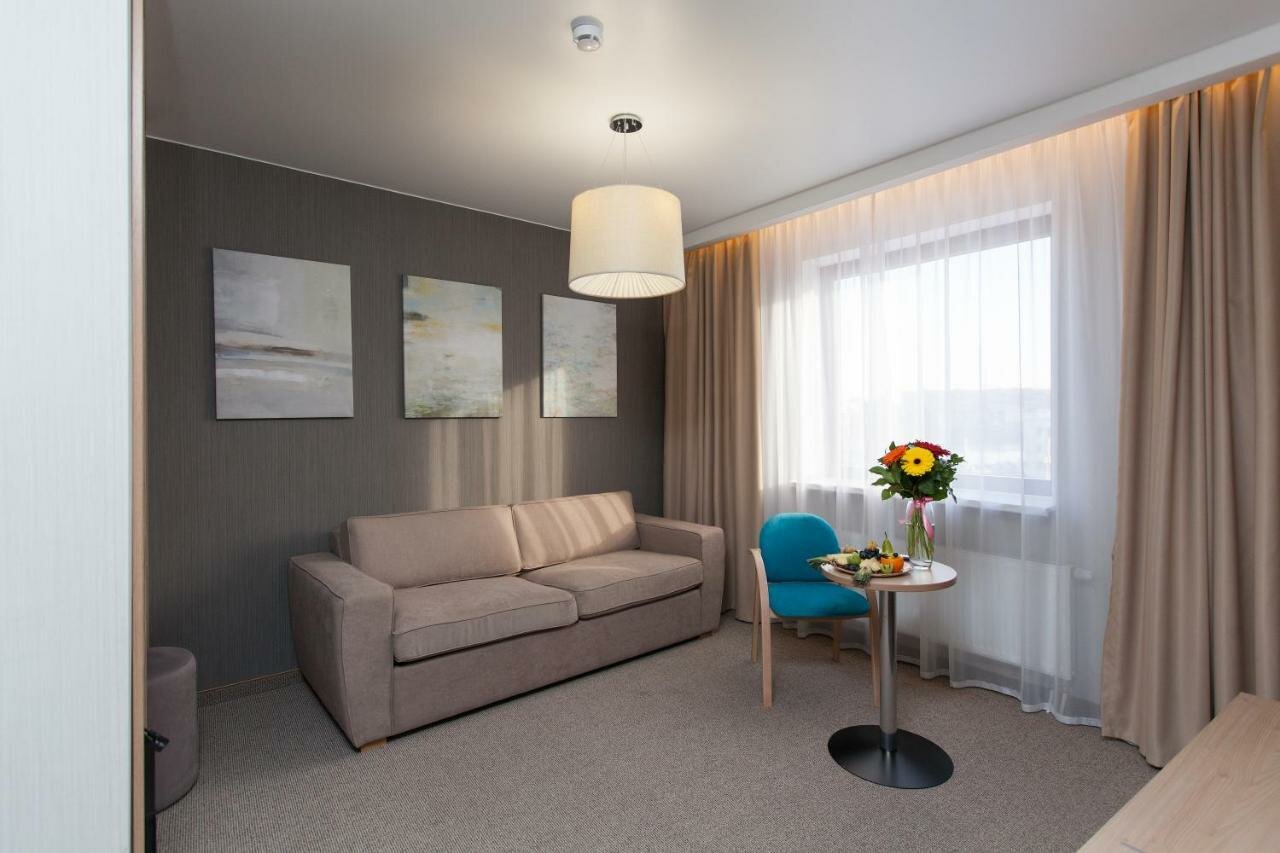 Замечательный отель! Удобное расположение! Бесплатная парковка для гостей! Отличный номер ( у нас был номер Студия на 4-ых)! Были нюансы с диваном, но их быстро устранили Круглосуточный бар в лобби! Завтраки полноценные на любой вкус! Не хватает только бассейна!