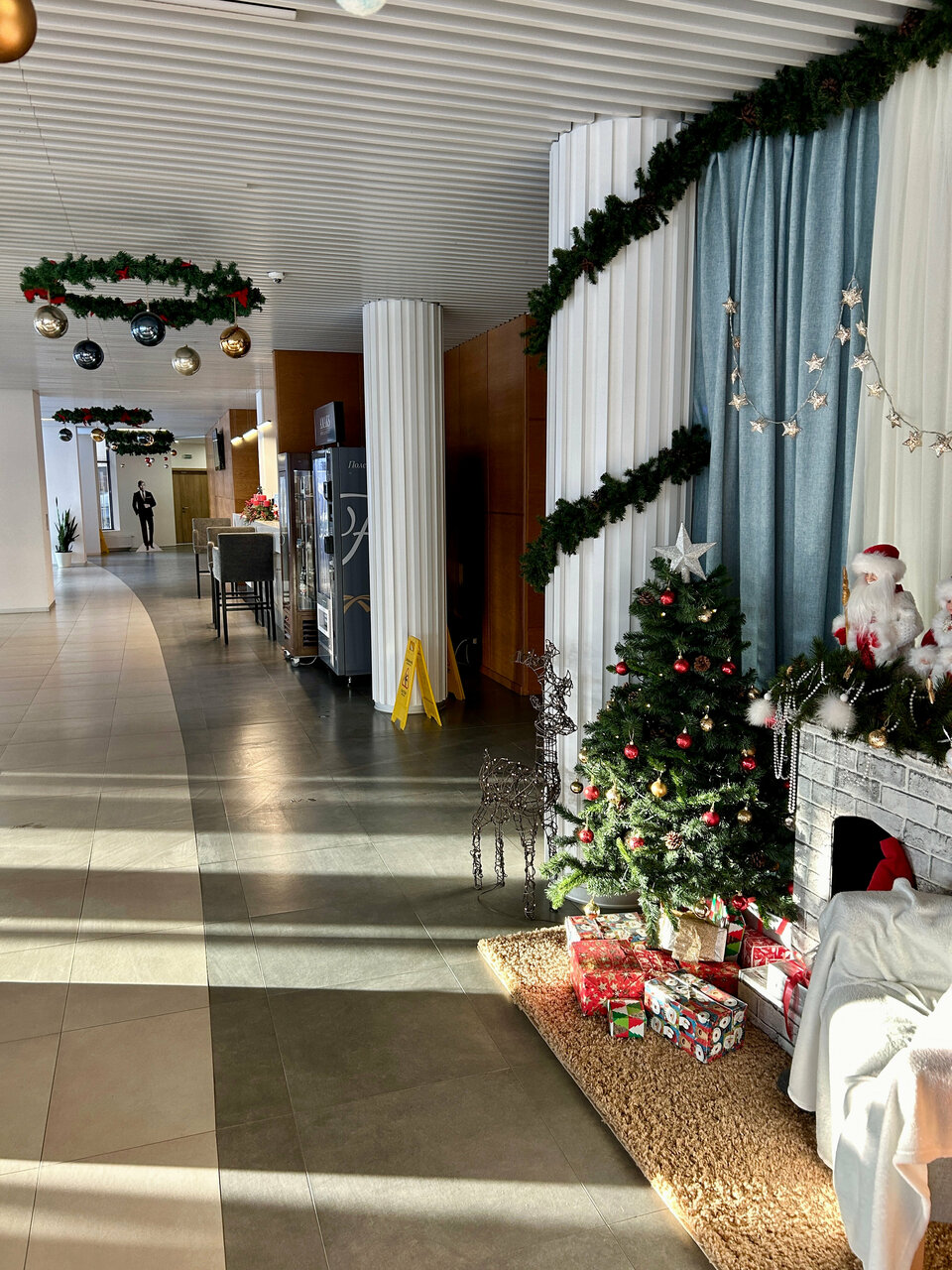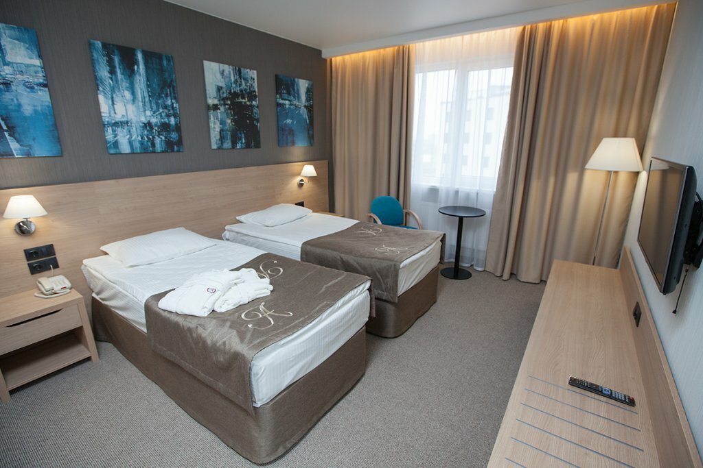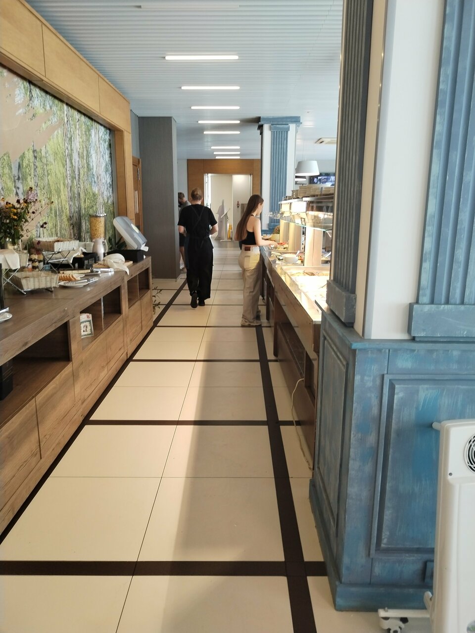 Из плюсов, приветливые сотрудники, хорошее обслуживание. Вполне приличный шведский стол на завтрак. На ресепшене даже можно купить сувениры по вполне человеческой цене, и общее впечатление от отеля положительное. Но, как водится, есть одно ‘но’. Всё было бы замечательно, если бы не свадьба в ресторане Есенин на первом этаже, которая шла до 11 вечера и после которой ещё убирались и двигали столы до пол первого ночи. Заплатили за весьма недешёвый отель, чтобы в итоге не выспаться от слова совсем. Крайне разочарованы и больше сюда никогда не приедем.