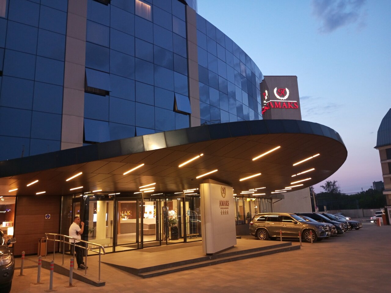 Неожиданно для Амакса иметь такое здание. Обычно это старые советские гостиницы, переделанные на современный лад. А тут целое здание, современное, красивое. Своеобразное расположение номеров. В номере уютно и тихо при закрытых окнах. Ощутил на себе, так как окна выходили на железную дорогу. Вот только на завтраки не пробиться. Люди поели и ушли, а грязная посуда ждёт, пока её уберут. А желающих позавтракать ещё много…