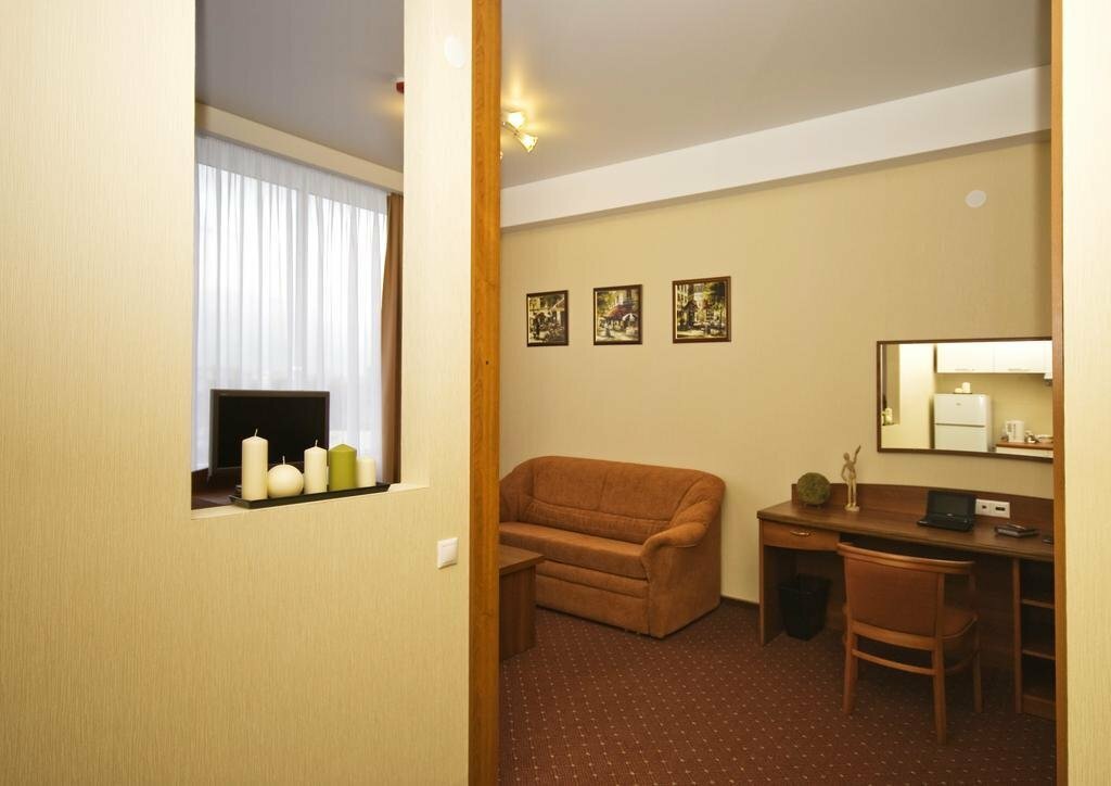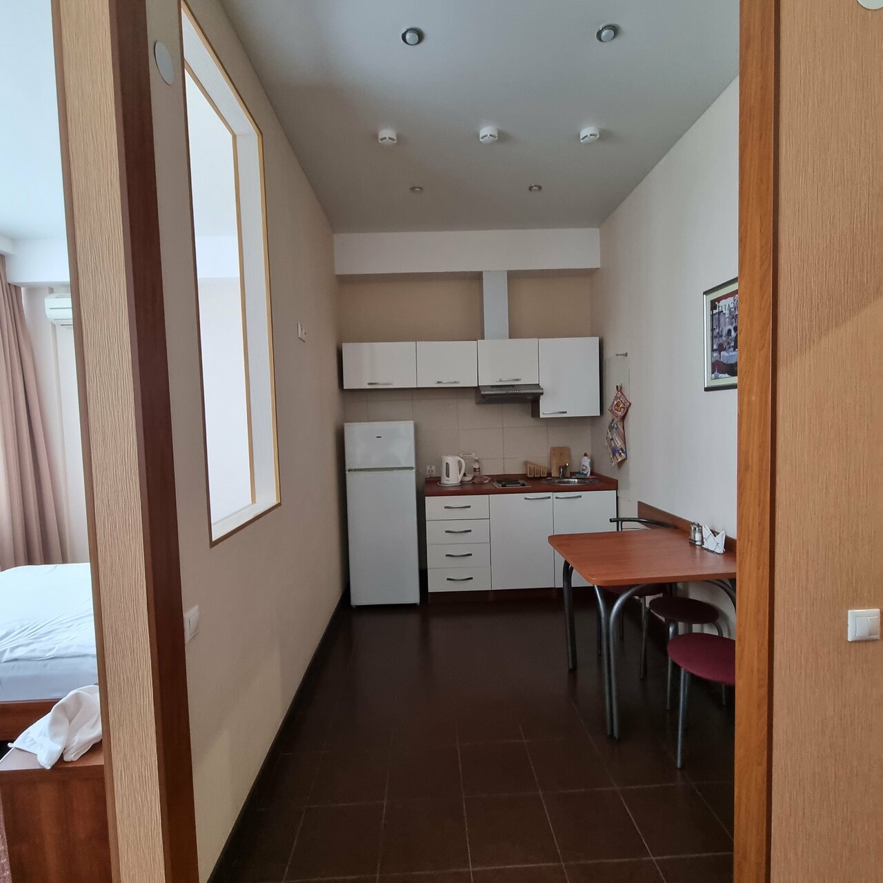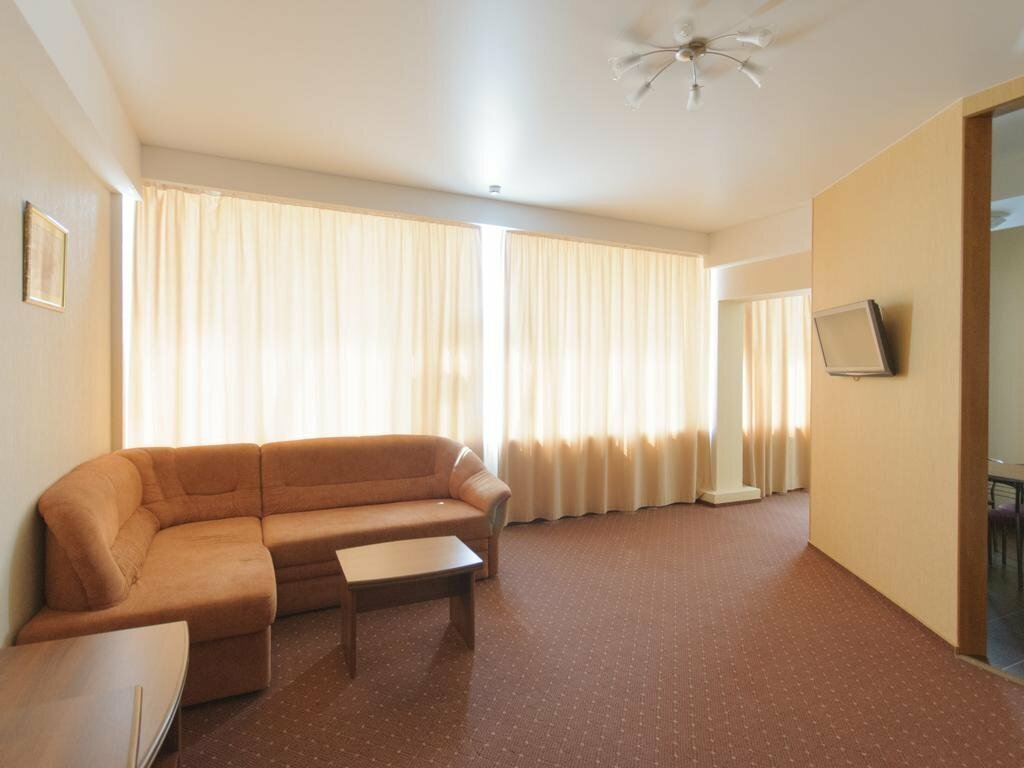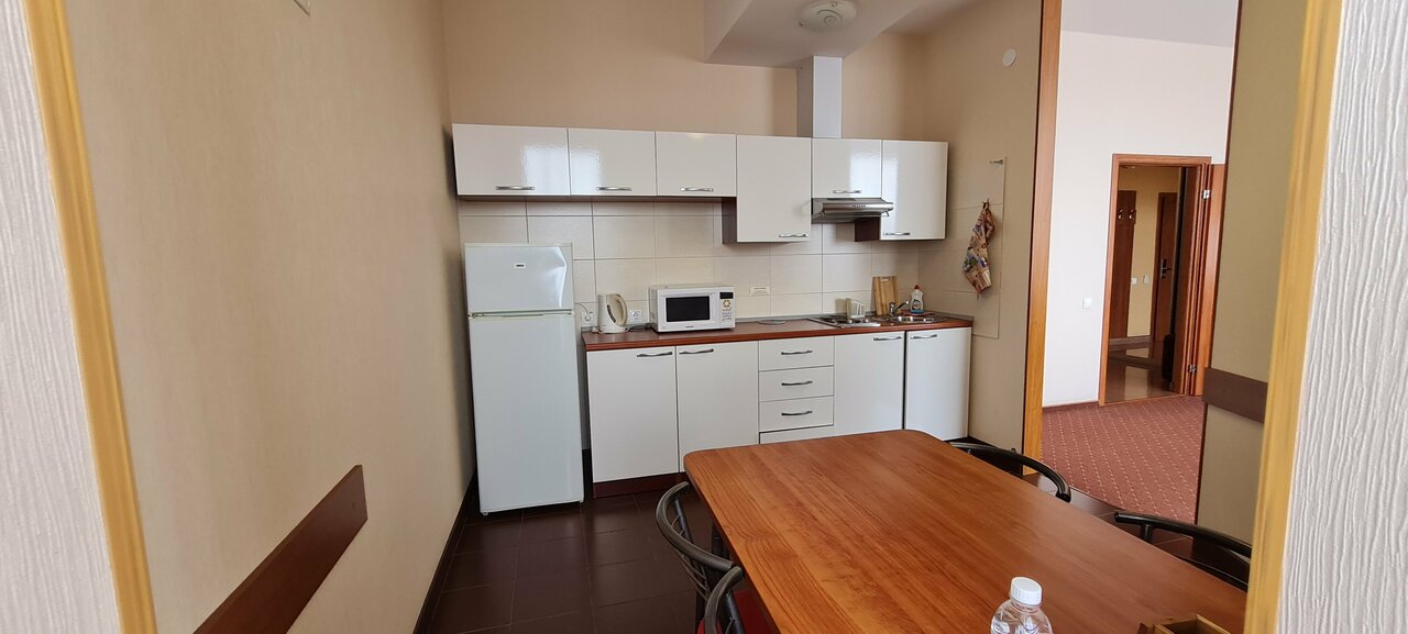 Останавливались на ночь в составе 4х человек(2 врослых/2 детей). Номер однокомнатный. Уютная кухонька, приличный сан узел, места не много, но для одной ночи вполне хорошее предложение. При заселении есть приятный бонус в виде 2х часов на бесплатное посещение акваклуба. Хамам советую)))