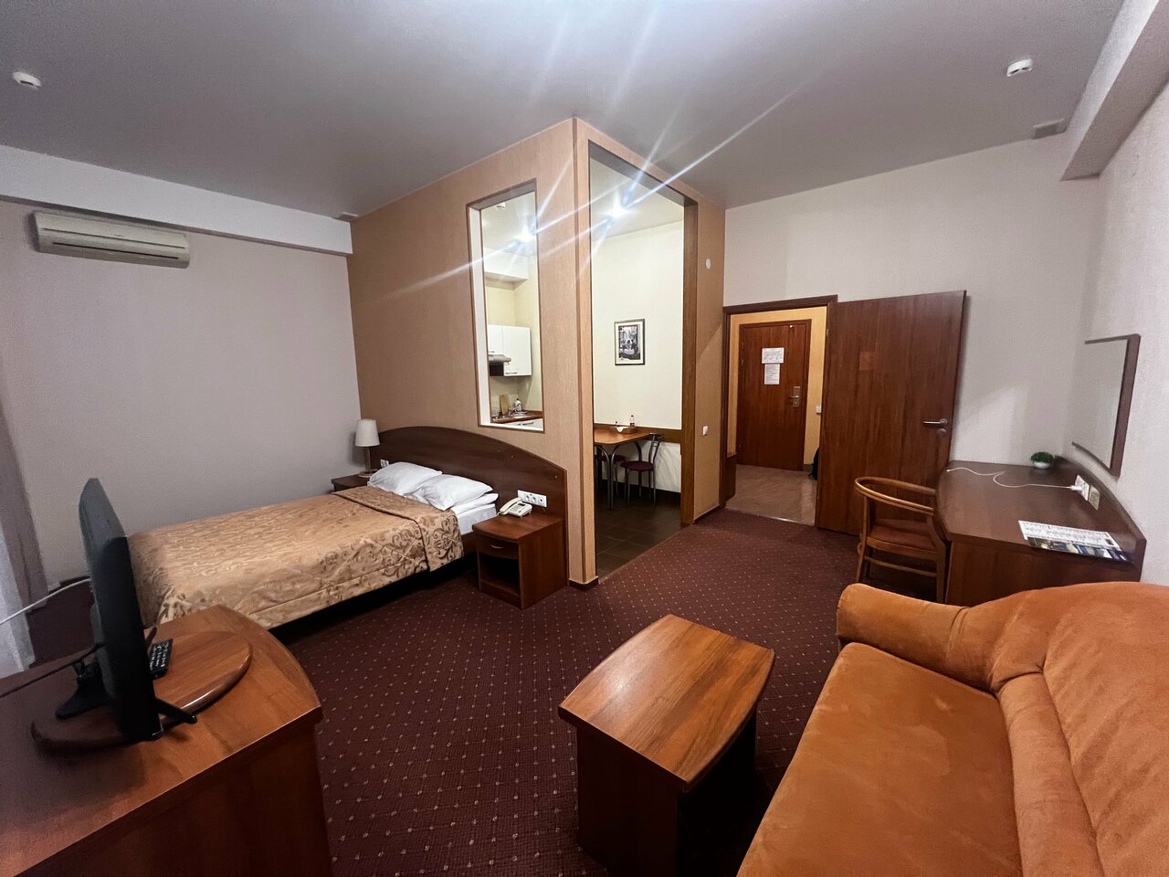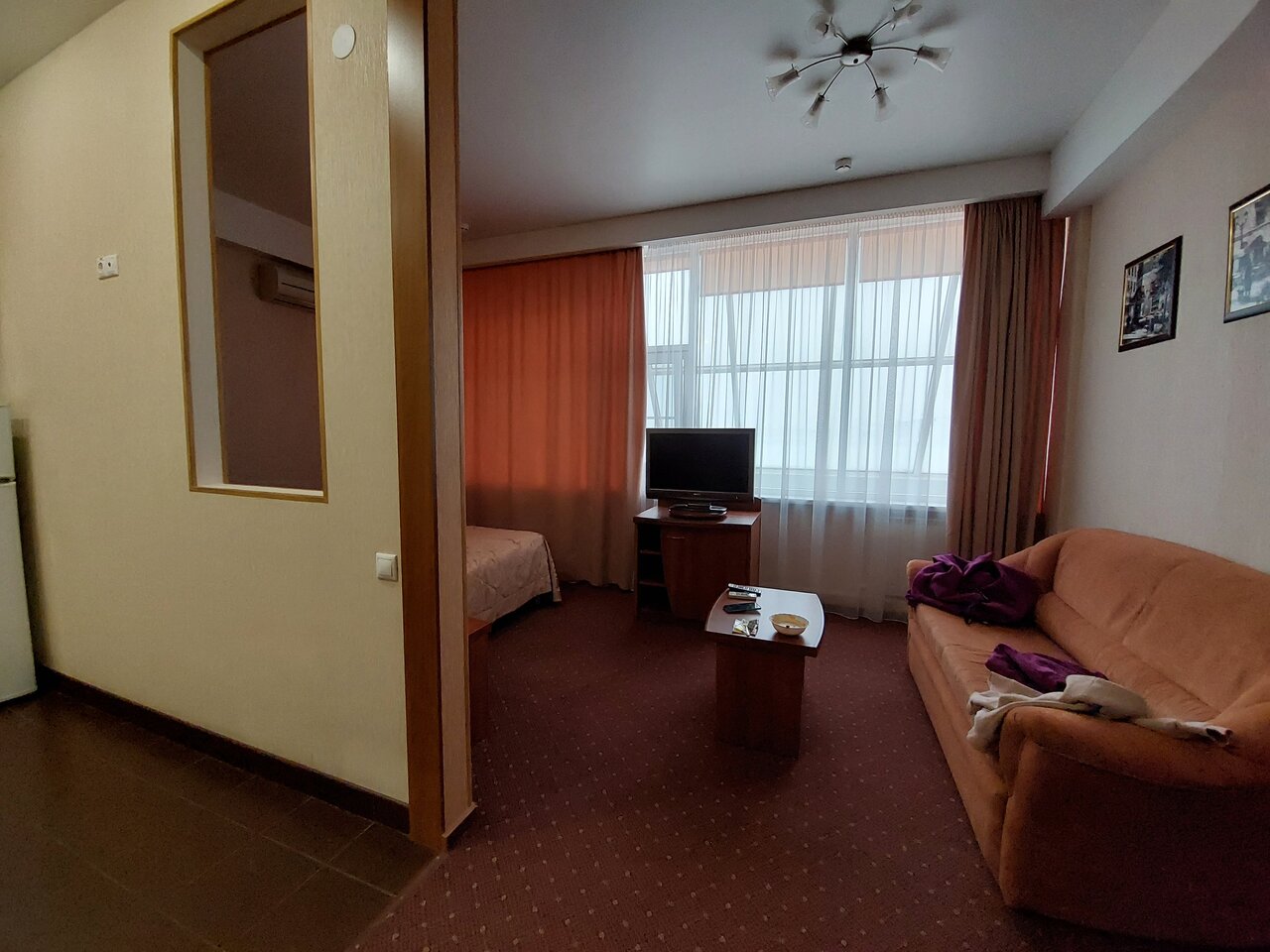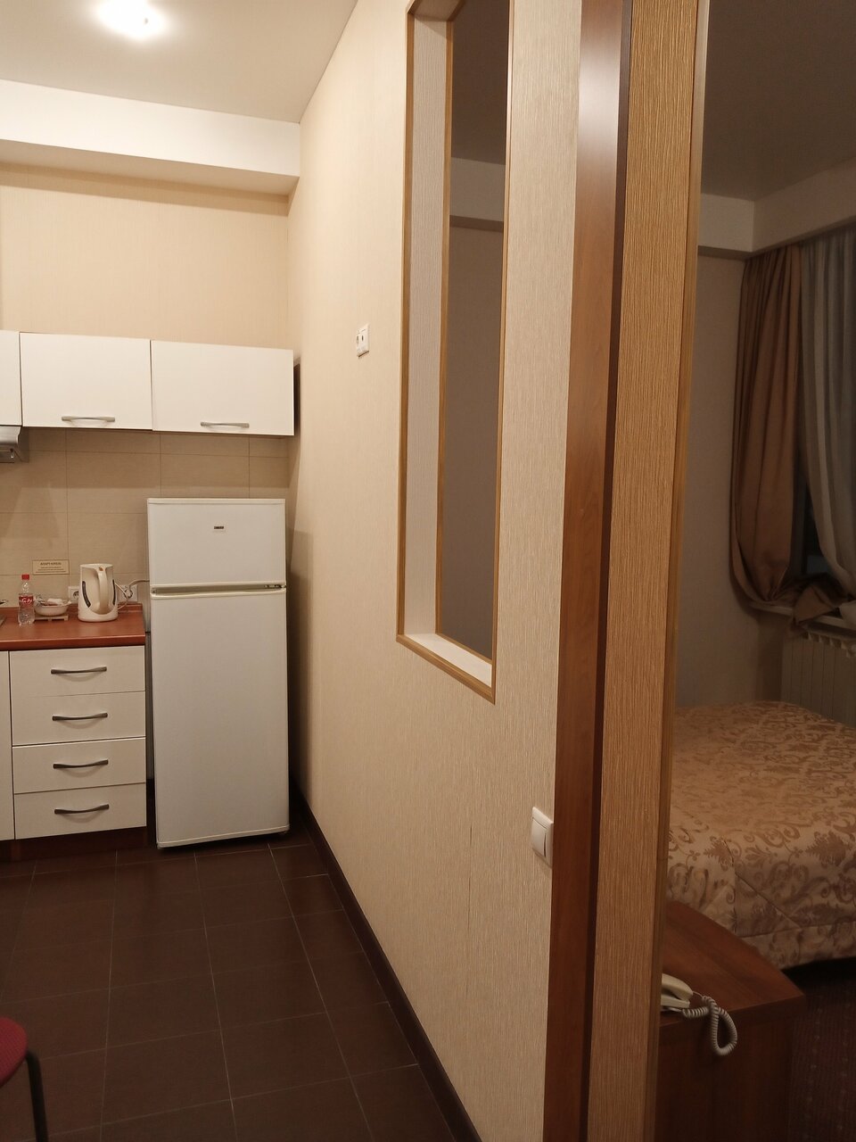 Останавливались на ночь в составе 4х человек(2 врослых/2 детей). Номер однокомнатный. Уютная кухонька, приличный сан узел, места не много, но для одной ночи вполне хорошее предложение. При заселении есть приятный бонус в виде 2х часов на бесплатное посещение акваклуба. Хамам советую)))