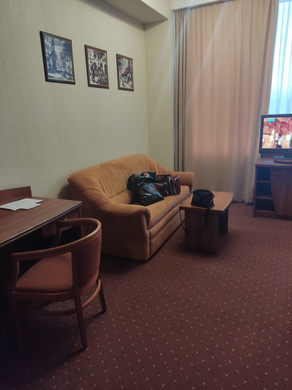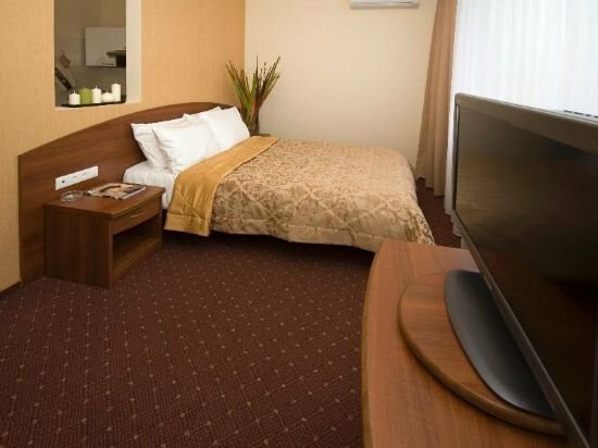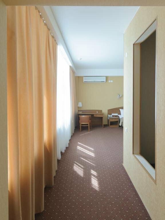 Снижаю звезду за очень древнюю обстановку в номерах которая с момента открытия На мой взгляд если сделать более современный облик и привести номера в соответствующий порядок, то посещаемость может измениться в положительную сторону учитывая большую фишку отеля аквапарк с саунами. В целом обычная гостиница среднего класса, кстати завтраки тоже не очень ( возможно из-за того что относятся к местной кафешке). Ресепшн приветлив и тактичен, все рассказывают и показывают! В номерах убирают каждый день, если это кому-то важно..