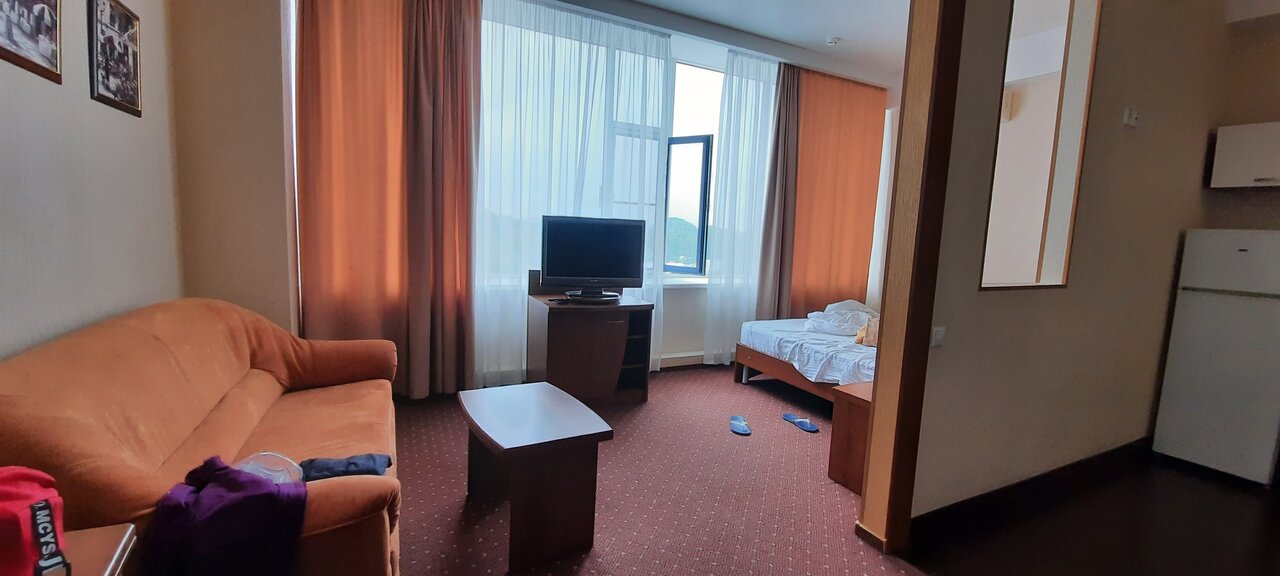 Очень понравился номер, обслуживание. Все вежливые, аккуратные, везде чистота. Особое спасибо за обеды в номер. Еда просто домашняя. Отдыхали с внуком, ему комфортнее есть в номере. Сходили в аквапарк, понравилось очень, особенно река в гроте