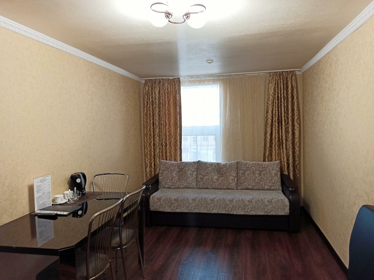 Комфортный вариант размещения для 1 человека. Номер состоит из прихожей и спальной комнаты с 1 двуспальной кроватью. Номер оборудован плазменным телевизором, кондиционером, холодильником, удобным рабочим местом.