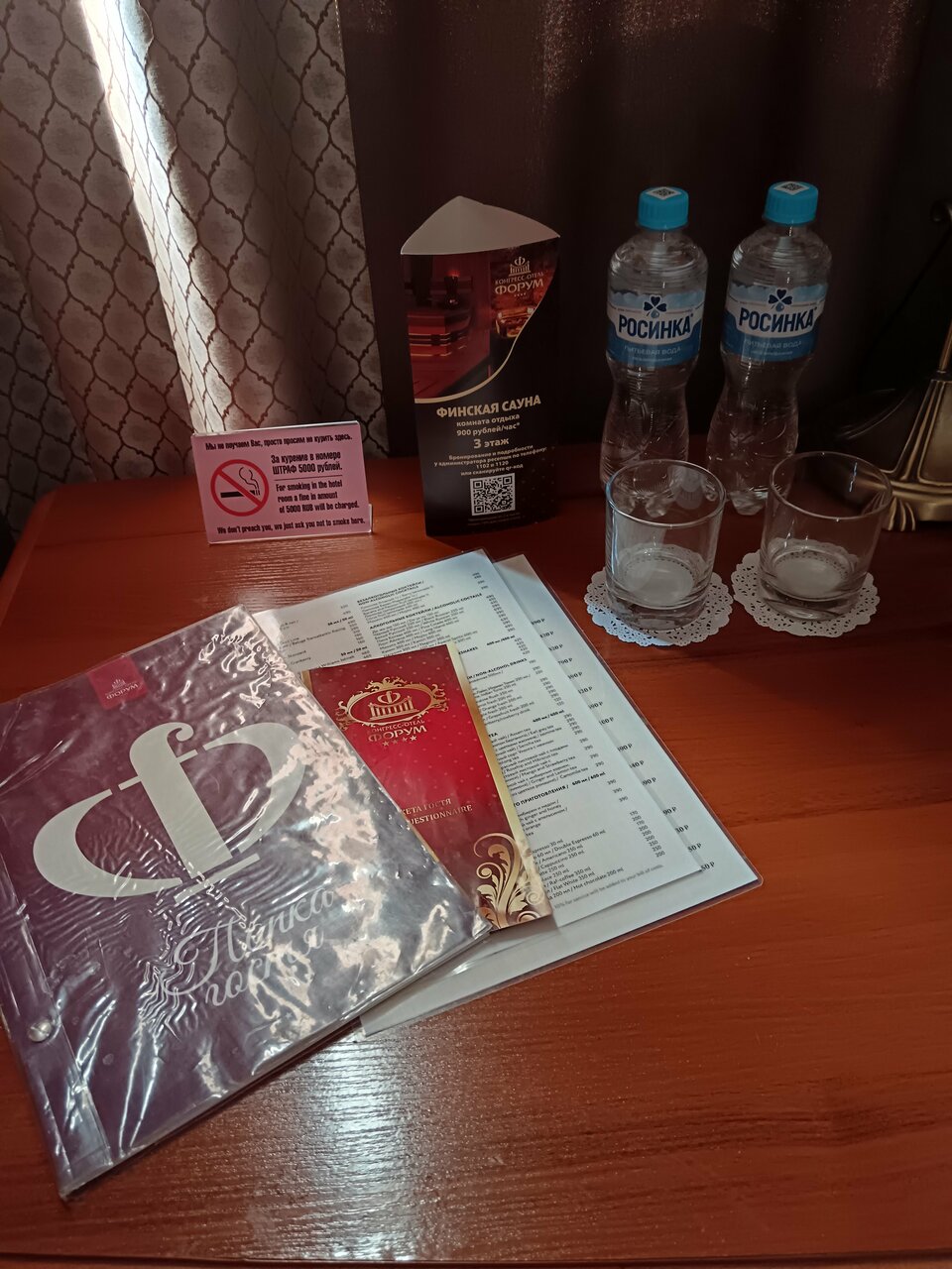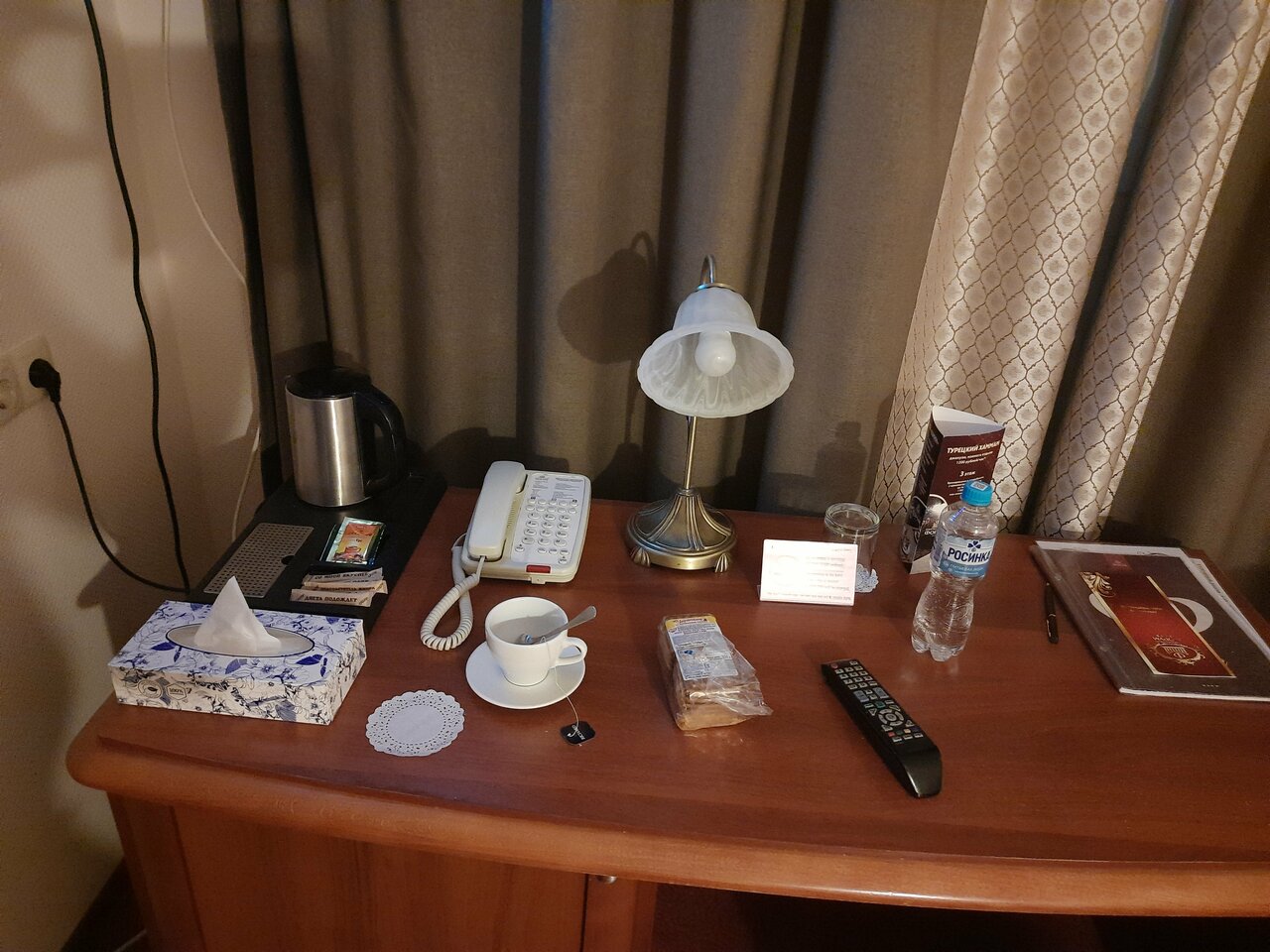 - Наличие чая, кофе, сахара, воды в номере.