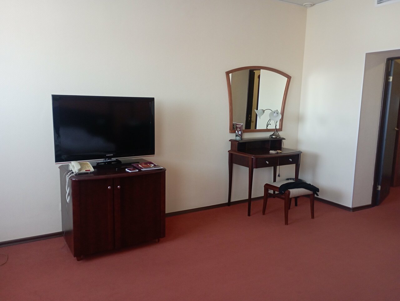 Номер точно как на фото. В номере чисто, есть все необходимое. Персонал очень замечательный, ответили на все вопросы, обо всем рассказали. Завтрак шведский стол, выбор отличный. Отдыхали с дочкой 4 года, она тоже не осталась голодной. Парковка на территории, место всегда есть.