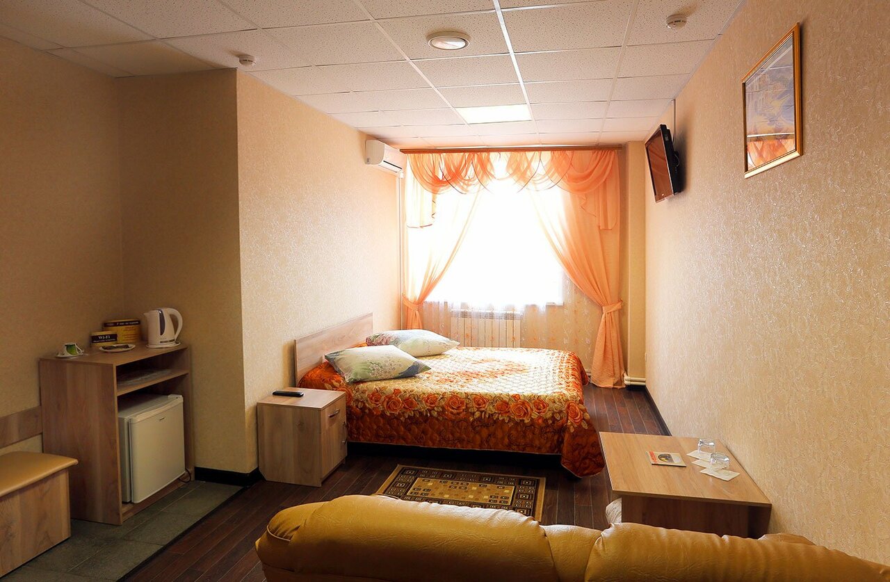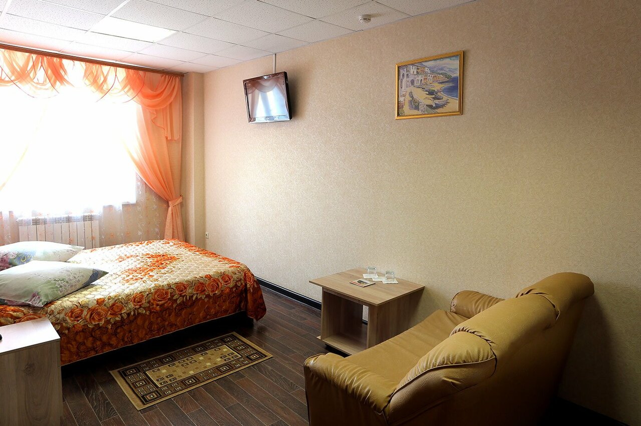 Услуги: — Номера от 1500 до 2000 ₽/ночь (с кондиционером, ТВ, Wi-Fi, холодильником). — Завтрак, ресторан, кафе, парковка. — Бесплатный интернет на всей территории. — Удобства: камера хранения, уборка, номера для некурящих. — Заезд с 14:00, выезд до 12:00.