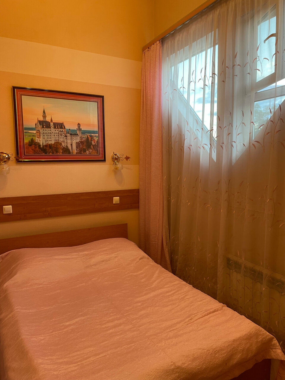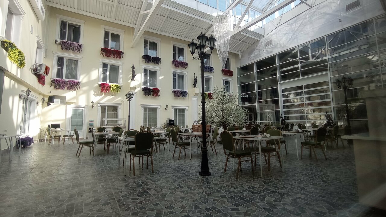 Гостиница обычная. Ничего особенного. Радует соотношение цены и качества. Эконом номера чистенькие, и на этом их достоинства заканчиваются. Мебель старенькая, советская , и санузел (в моем номере) был наверное не очень исправным, поскольку в номере пахло канализацией, а окна почему-то не открывались. Именно за это снимаю звезду. Всё остальное хорошо: завтраки — шведский стол (все вкусное), кафе есть прям в гостинице, сауны и бани. Расположение — не очень удобное, но общественный транспорт ходит, рядом остановки есть.