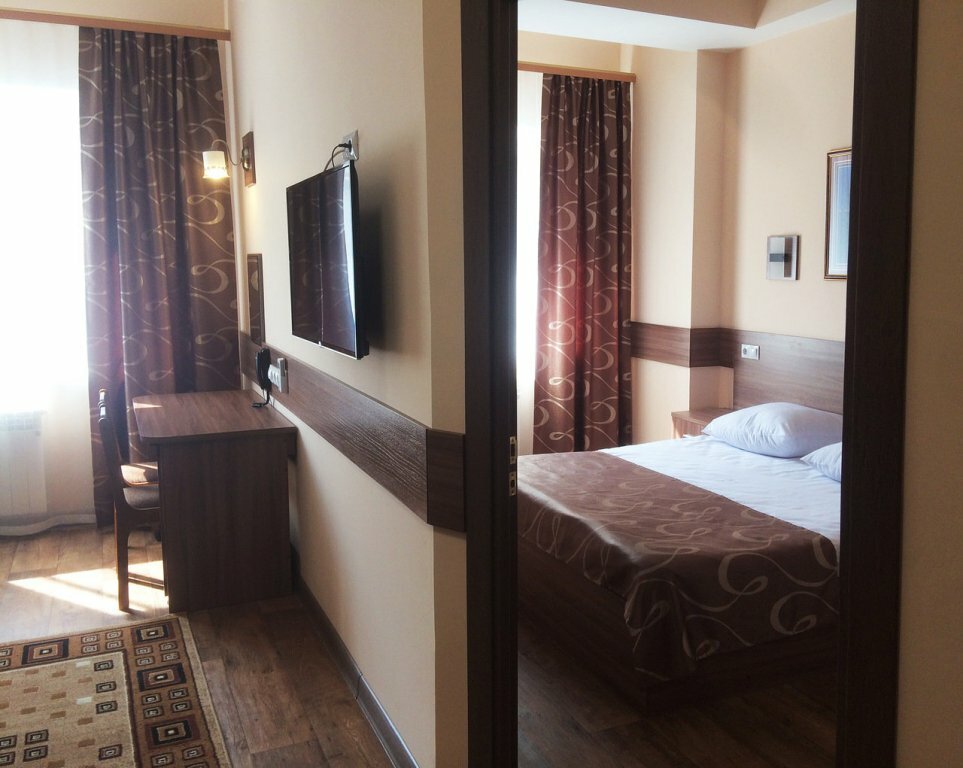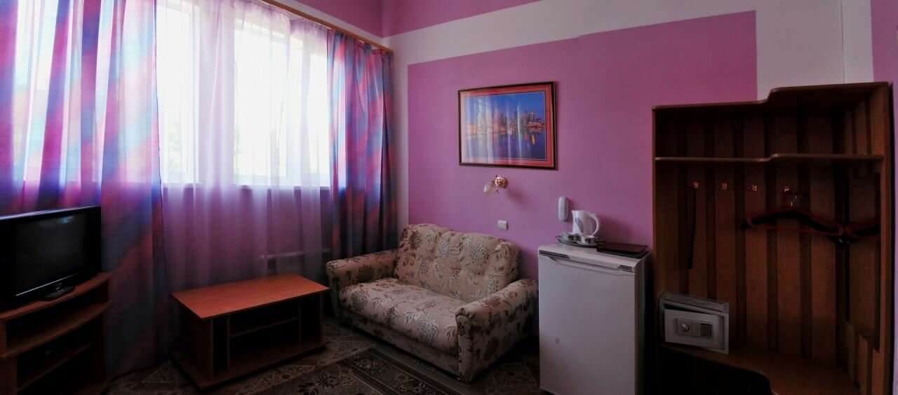 Сняли двухместный номер на время командировки. Напоминает детский лагерь 2000х годов. В номере чисто, санузел также убран. Горячая/холодная вода есть. В номере есть фен, телевизор(кабельного ТВ нет, только Эфир) и кондиционер.Сломана дверка шкафчика в коридоре, неисправен сейф,на полке рядом с феном куски плинтусов и уголков оставшихся после ремонта, дырка на подушке и одеяле но постельное белье свежевыстеранное и без пятен,несмотря на объявление о платном содержимом бара-хололильника он оказался пуст.Завтраки включены в стоимость(шведский стол), кормят в кафе на 1 этаже, еда напоминает домашнюю, достаточно вкусно, можно пропустить пару рюмок после тяжёлого дня с нажористым борщем(по приемлемой цене). В гостиничном комплексе присутствует сауна. По соотношению цена/качество 3 из 5