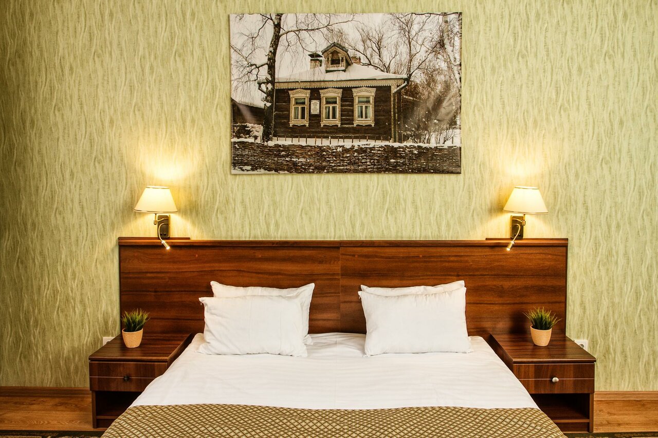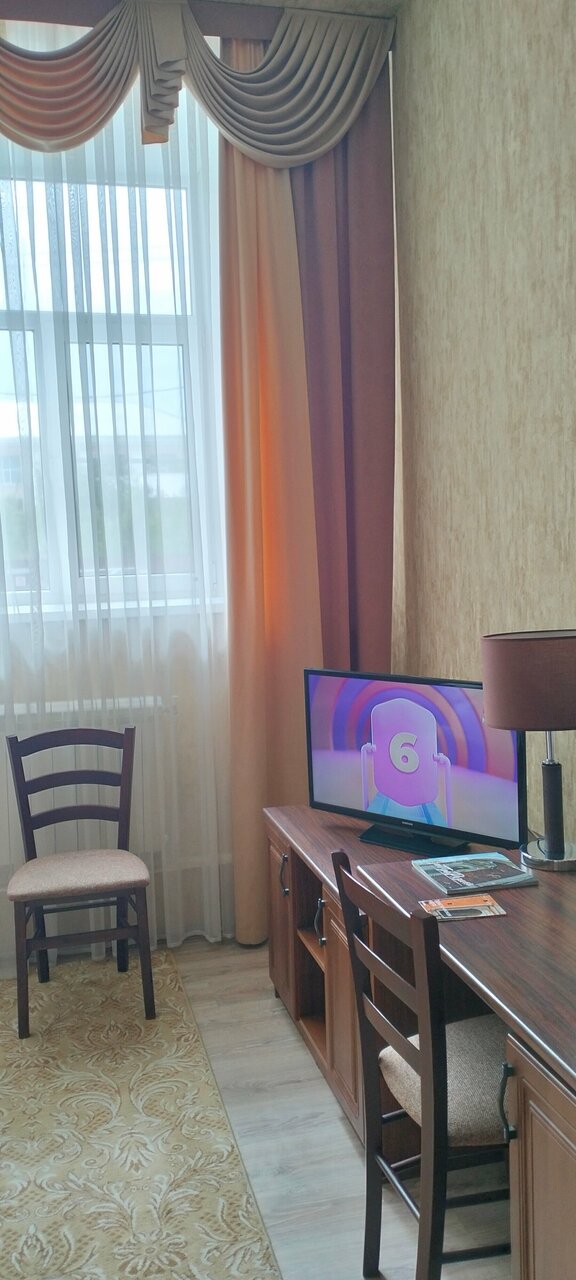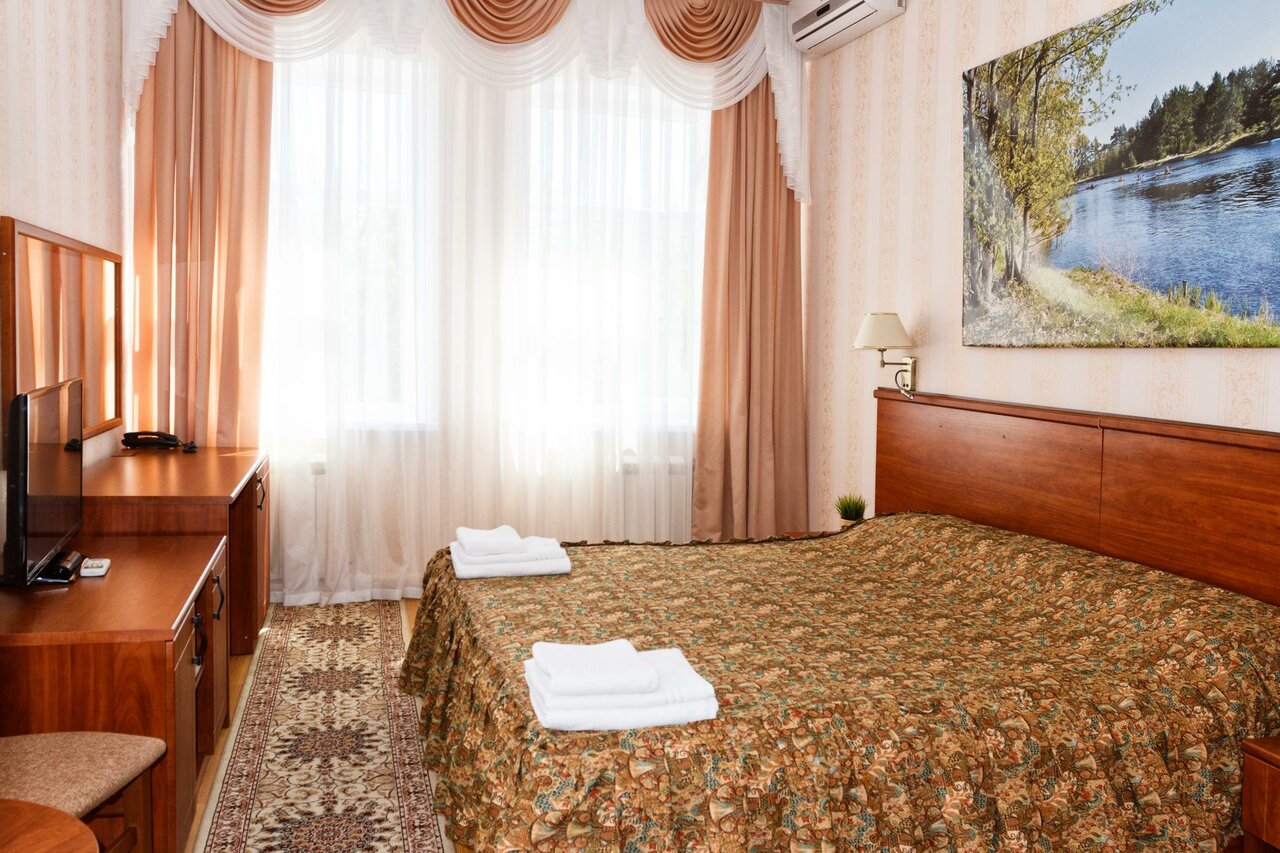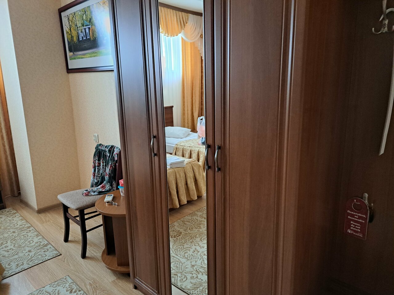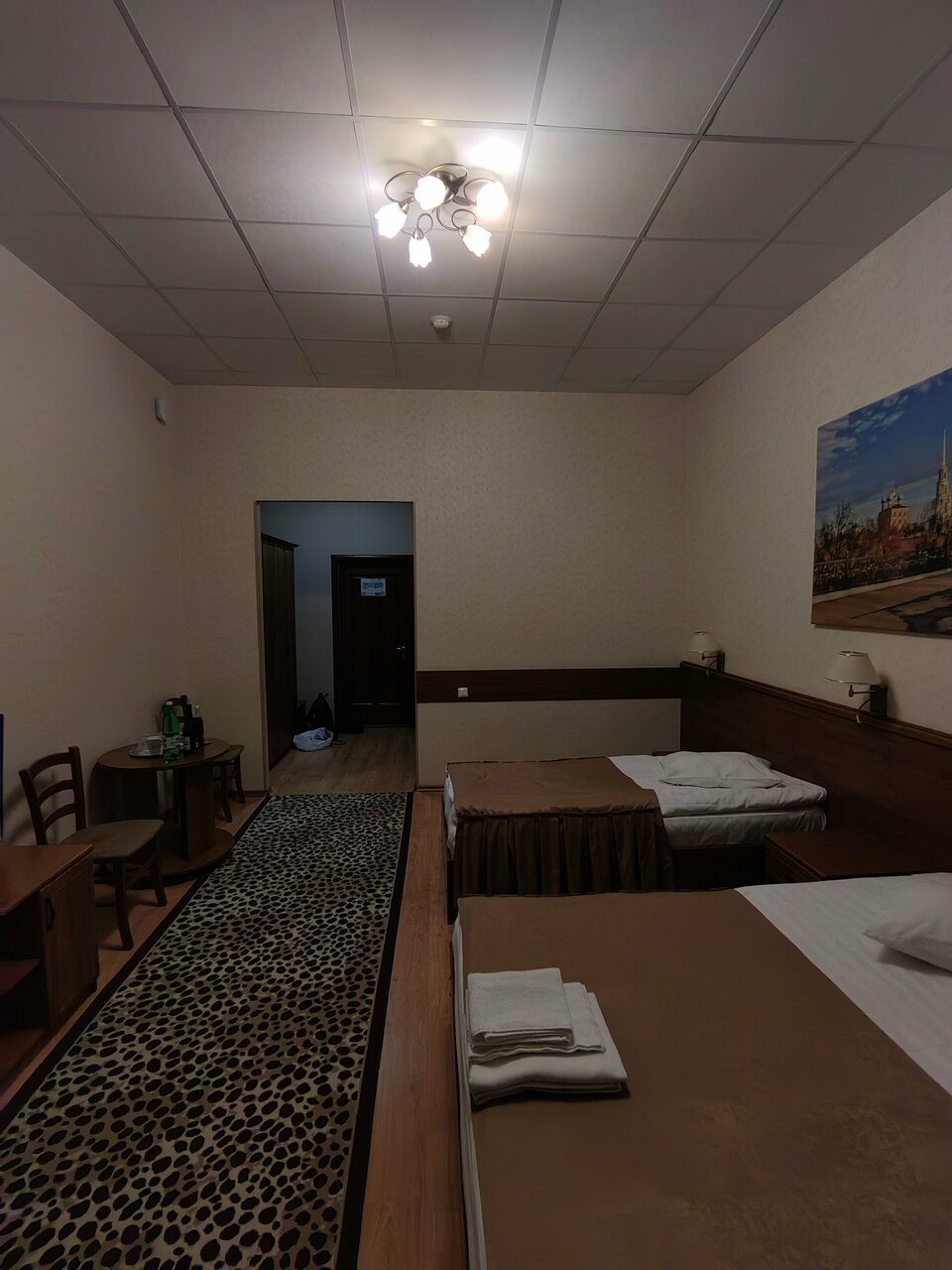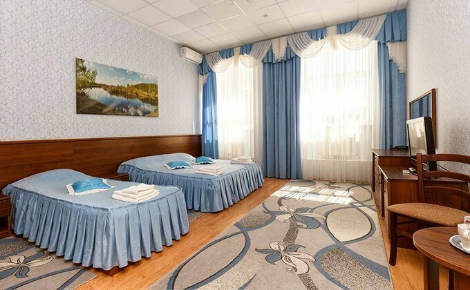 Просторный номер с высокими потолками, огромными подоконниками. Чисто, тепло. Отдельно отмечу очень чистые ковры, что мне как аллергику было важно. В ванной тоже чисто, каждый день кладут шампунь и гель для душа. В номере чашки, ложки, на этаже — кулер. Хорошие завтраки — каша, горячее, сосиски, омлет, салат, овощи, колбаса, сыр, блинчики/запеканка, свежие фрукты. Чай, кофе. Из минусов — невкусный кофе в столовой из автомата, никакущий вай-фай (слабый, даже картинки в ленте не прогружает) и маловато розеток (в ванной — ни одной, фен некуда воткнуть). В целом, хорошее сочетание цена/качество, близко до Кремля, недалеко остановка общественного транспорта, много автобусов и троллейбусов ходит.