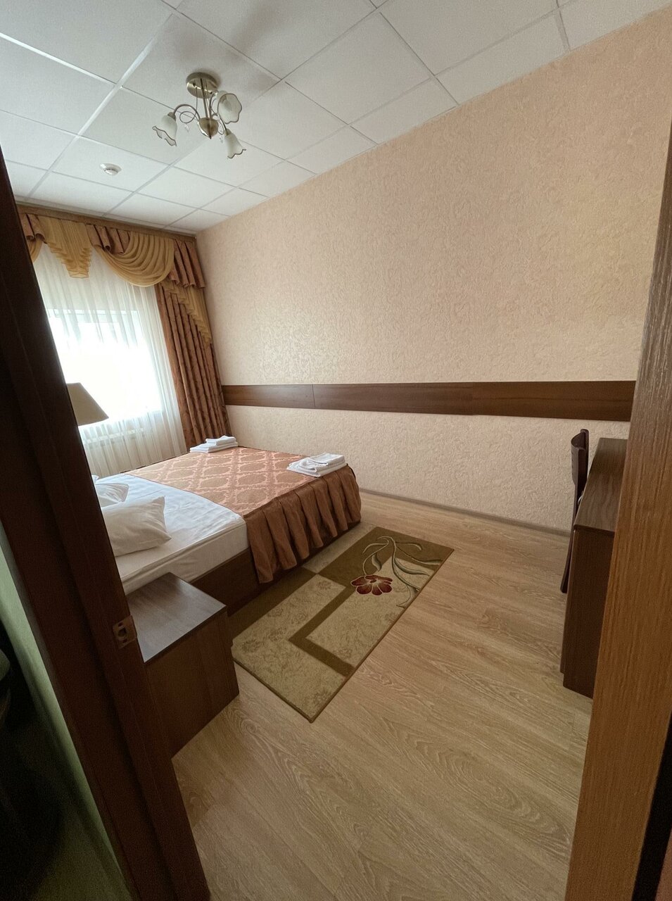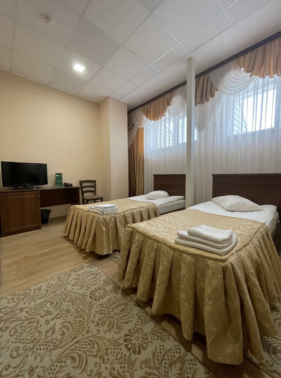 Жили в гостинице с 4 по 6 января. Номер комфорт двухместный. Большой с двумя раздельными кроватями. Все необходимое есть. Чисто. Персонал приветливый. Завтраки вкусные. Есть парковка. Очень хорошее расположение. Практически в центре. Все понравилось. Немного слышали соседей. Но это не мешало.