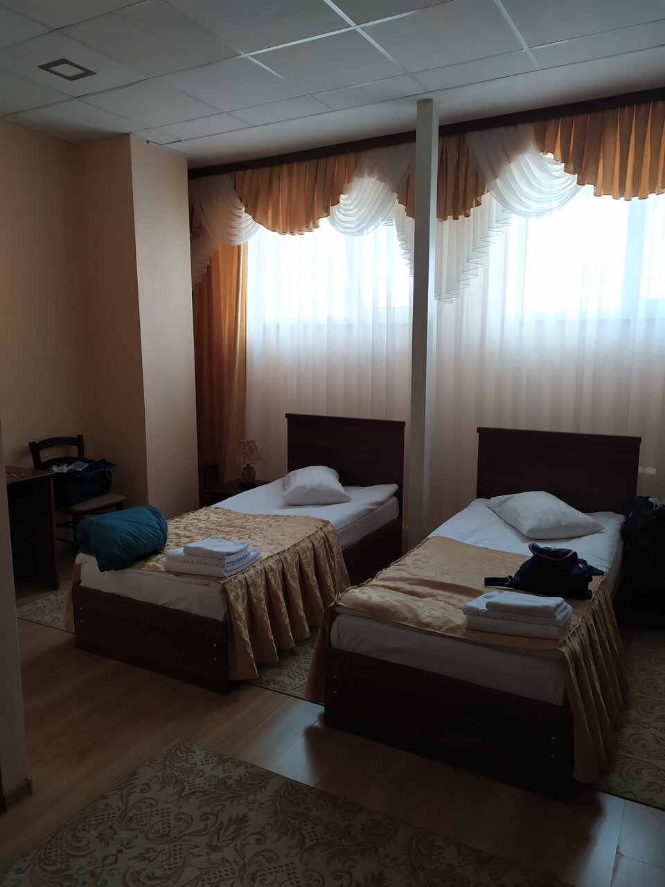 Мебель, сантехника, электрика в номерах в порядке. Персонал дружелюбный. Единственный минус — изношенные замки в некоторых номерах, что для десятилетней гостиницы довольно обычно