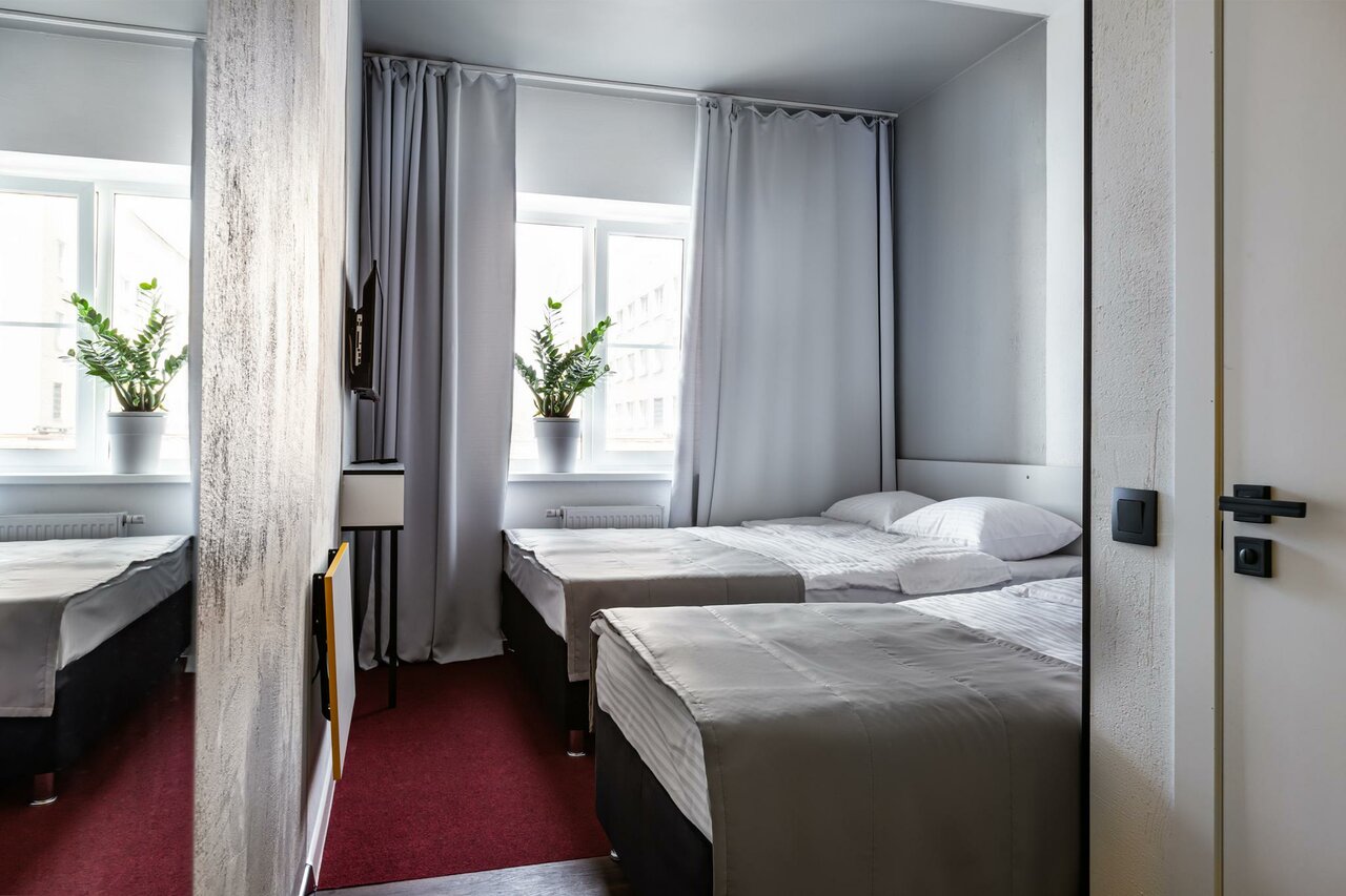 Комфортный трехместный номер, с собственным душем и туалетом.Площадь номера: 16 кв.м.Размер кровати: двуспальная кровать 160*200 см + односпальная кровать 90*200 см.Телевизор, wi-fi, шкаф, белье, полотенца, туалетные принадлежности.