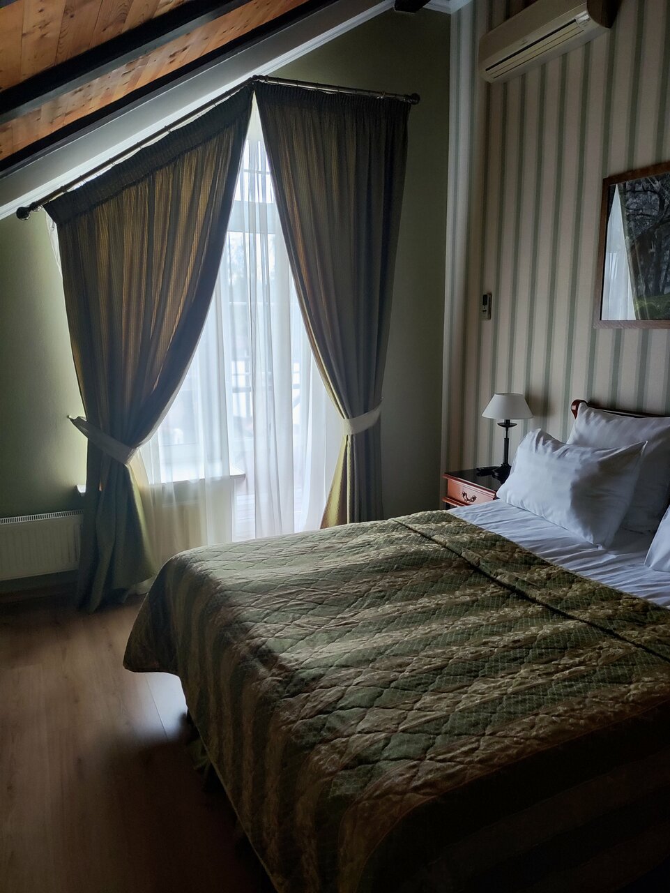 Очень красивое место! Приветливый персонал, хорошее обслуживание в ресторане. Кухня вкусная. Номер люкс не очень большой, но очень уютный. Понравилось, при случае вернёмся.