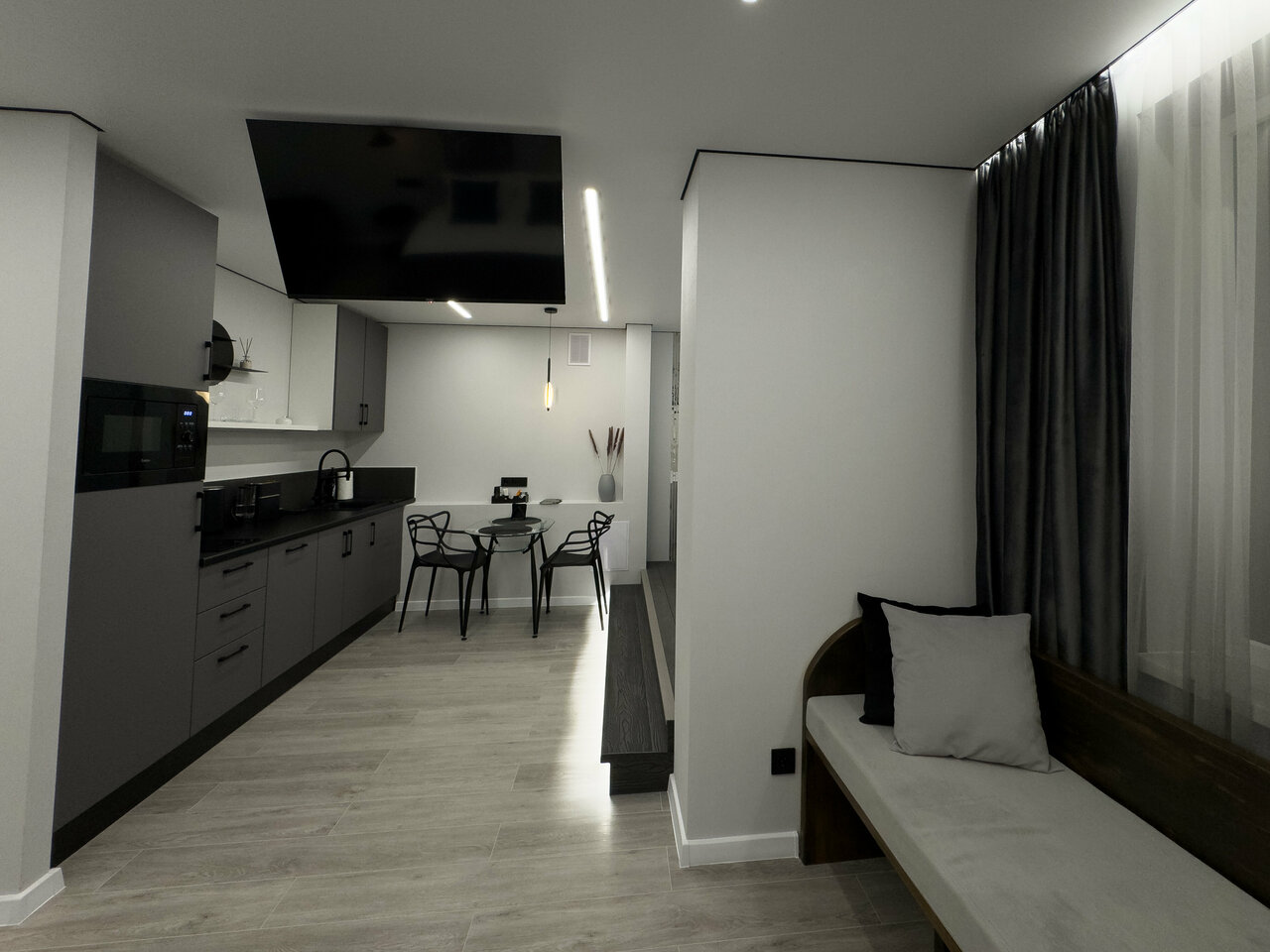 Прикольное место. Уютно. Есть кондей. Ну тут только один минус. Это шум соседей. Тк шумоляция плохая.