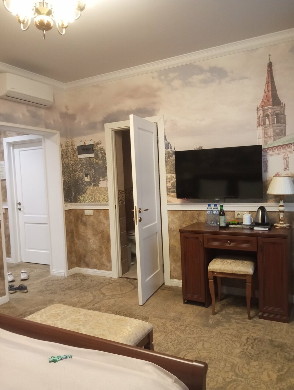 Отличный отель. Брали номер с джакузи. Осталась полностью удовлетворена отдыхом в Рязани благодаря этому месту. Номер выполнен в стиле Кремля — на стенах фотообои — прикольно мне все понравилось. Завтрак не очень, конечно, но мне это неважно.