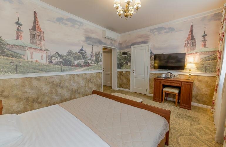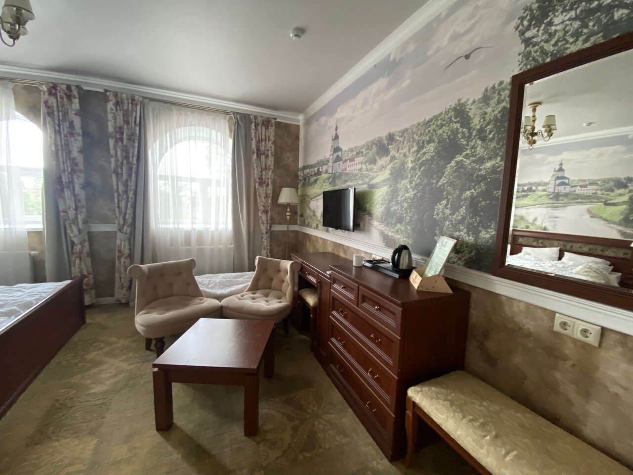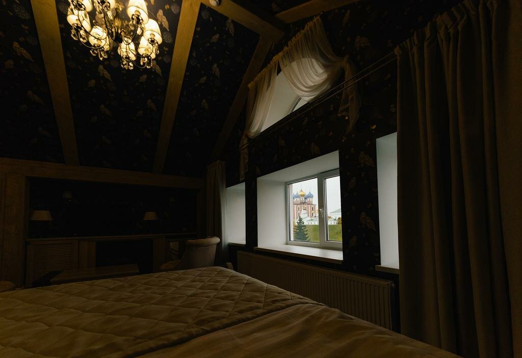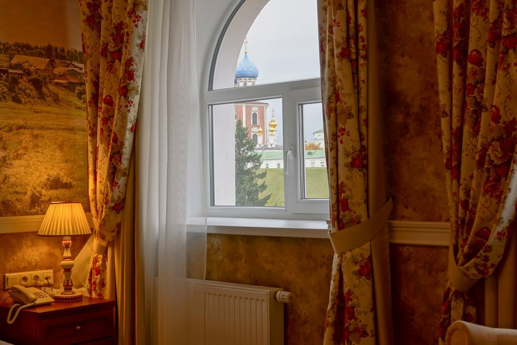Отель расположен очень близко к рязанскому Кремлю. Номер ме достался весьма хороший: удобная двуспальная кровать, просторный санузел. Единственным недостатком пожалуй можно считать отсутствие письменного (или аналогичного по назначению) стола и стульев в номере, однако это попросту не всем гостям нужно. Есть мини бар (я им не пользовался), чайная станция в номере (чайник на специальной подставке с чашками и чайными приборами). В наличии кулеры с водой на каждом этаже. Завтраки включают в себя как блюда из шведского стола, так и блюда по выбору гостя из меню. В общем, атмосфера довольно таки приятная. Само здание также симпатичное. По обслуживанию вообще никаких вопросов.