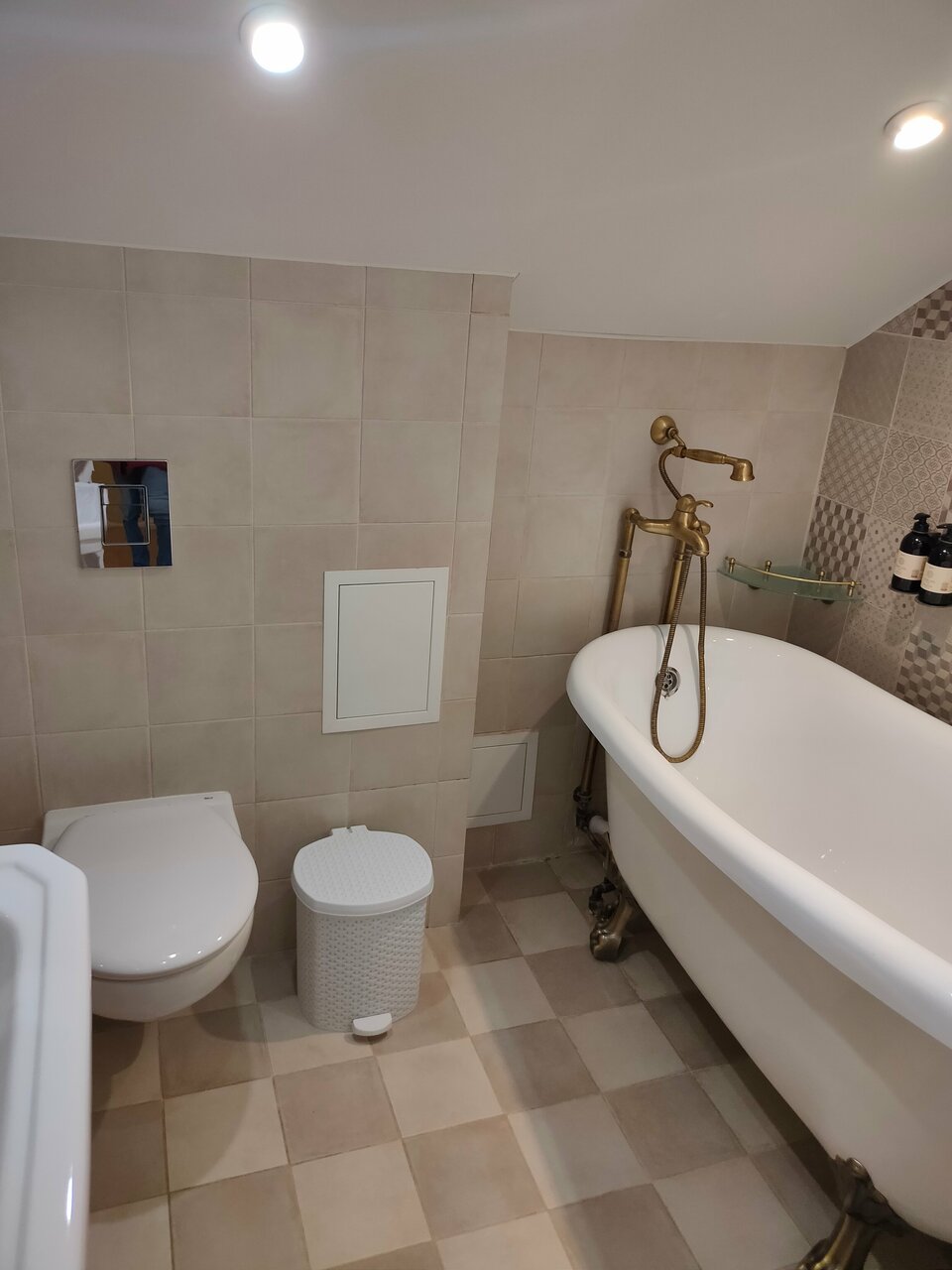 Был здесь в ноябре, две ночи. Всё очень понравилось — кроме одного — из-за чего поставил три звёзды. И это оказалось существенно. У меня рост 1.90. В ванне с туалетом висит низкая остра люстра прямо на пути у унитазу. Да-да, и я каждый раз бился больно об нее головой на пути туда и обратно. Если бы жил там неделю, то пробил бы наверное голову, ну или привык бы нагибаться!) Решение вообще не понятно чем обусловлено. Выглядит висячая люстра в маленькой ванной так себе. Дизайн ее там не требует — в гостиной например нет люстр. Уместнее был бы конечно плафон или софиты. Ну или надо в описании номеров сделать приписку: ‘Только для гостей среднего роста и ниже!’:) Или выдавать высоким паролоновую шапку для походов в туалет.