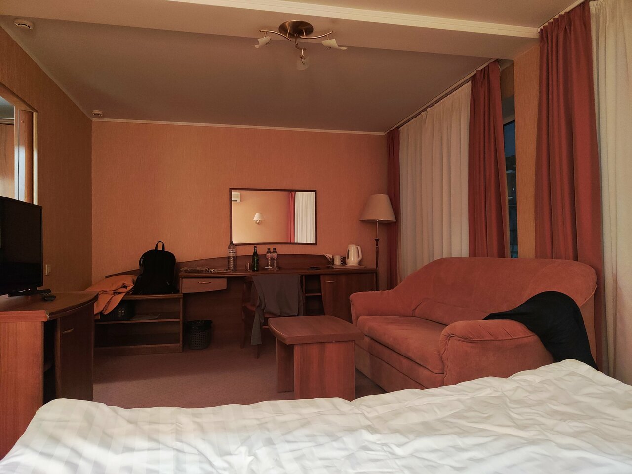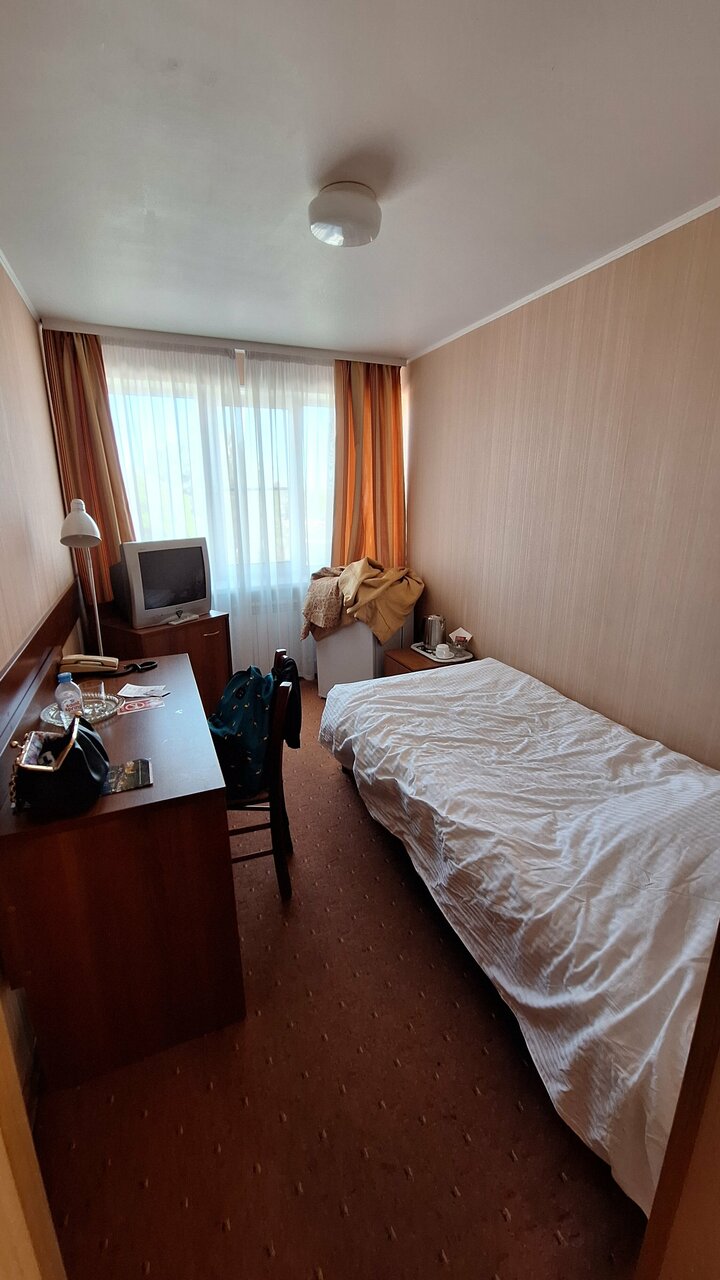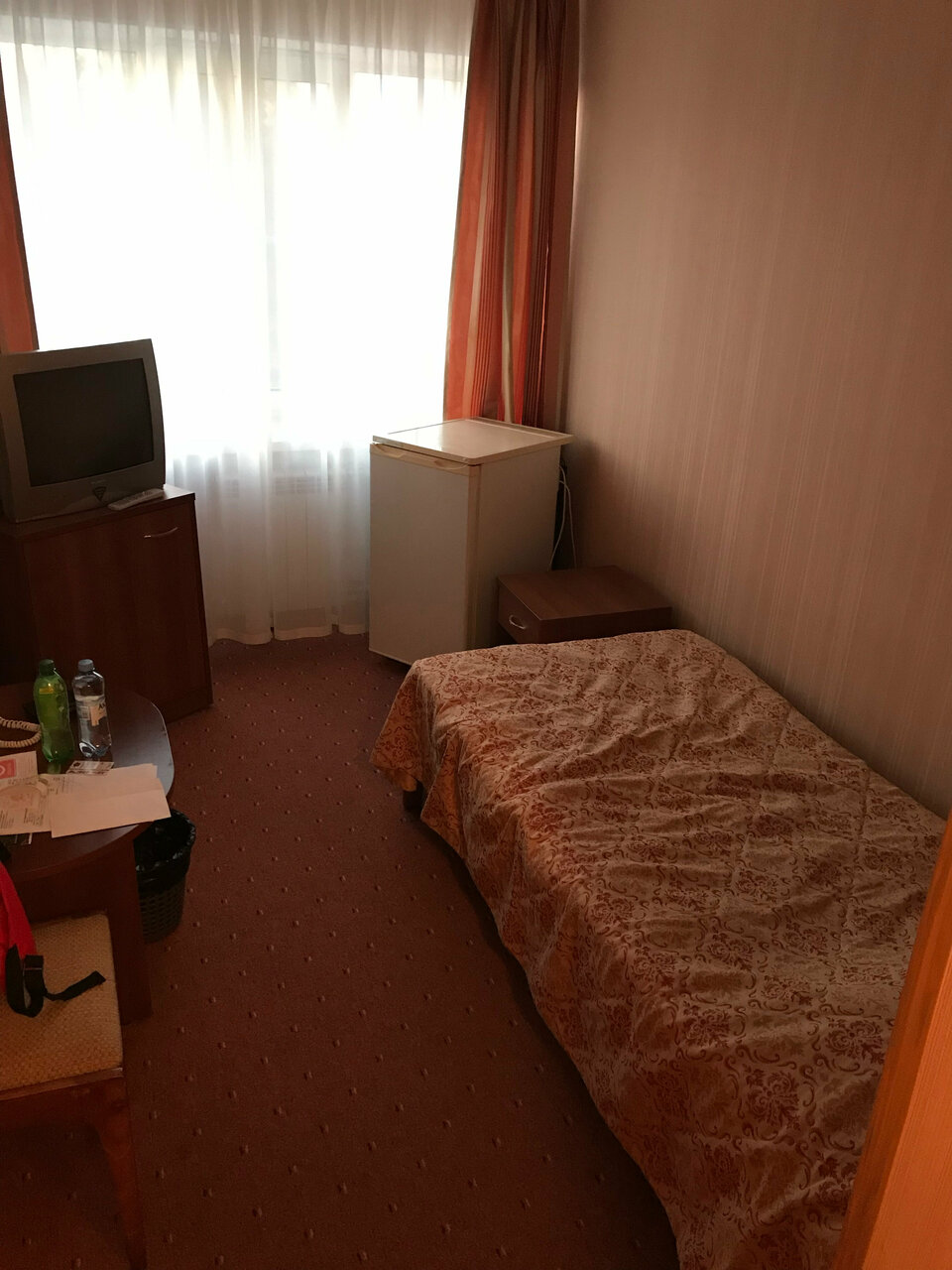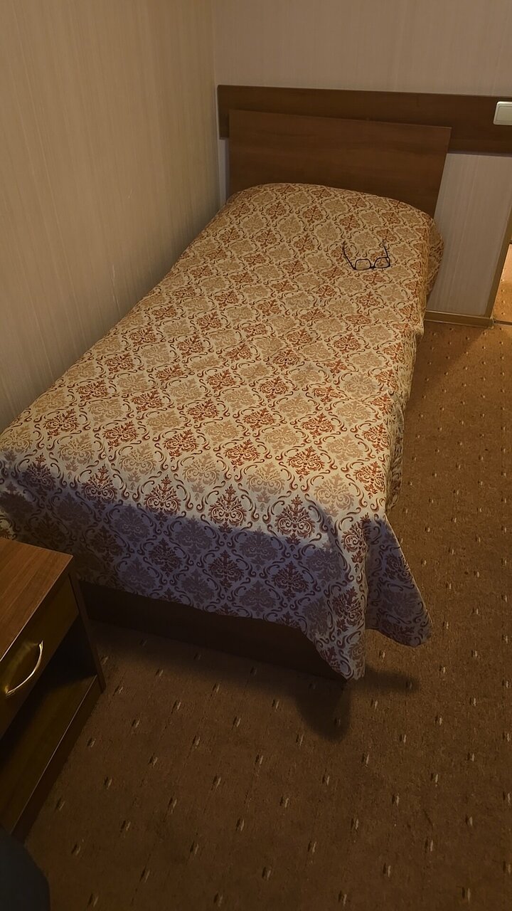 При заселении мне предложили пойти через дорогу поискать гостиницу лучше, если мне что то не нравиться. Я лишь задался вопросом: могу ли я не сутки оплатить а лишь время проживания до поезда 4 часа, либо ночь и тд. Ну, тогда о проживании: заплатил я 2000 и когда зашел в номер был весьма удивлен точной копией лица встречающего гостей с самим номером. Думал, что такое бывает только с владельцами собак и их питомцами. Как в гостях у бабули в СССР, даже запах соответствует. В общем правильно, что мадам на ресепшене предлагает поискать другую гостиницу.