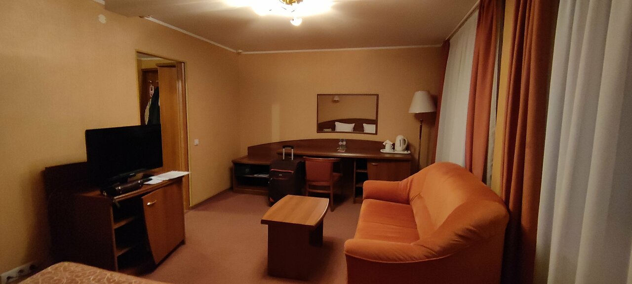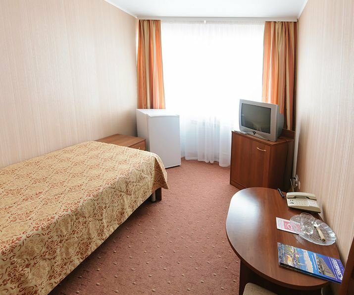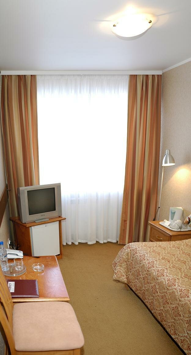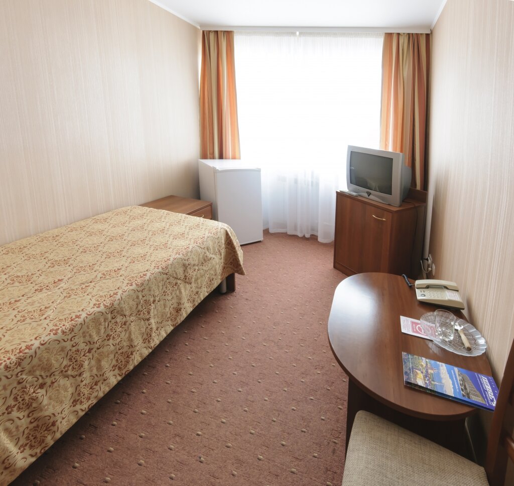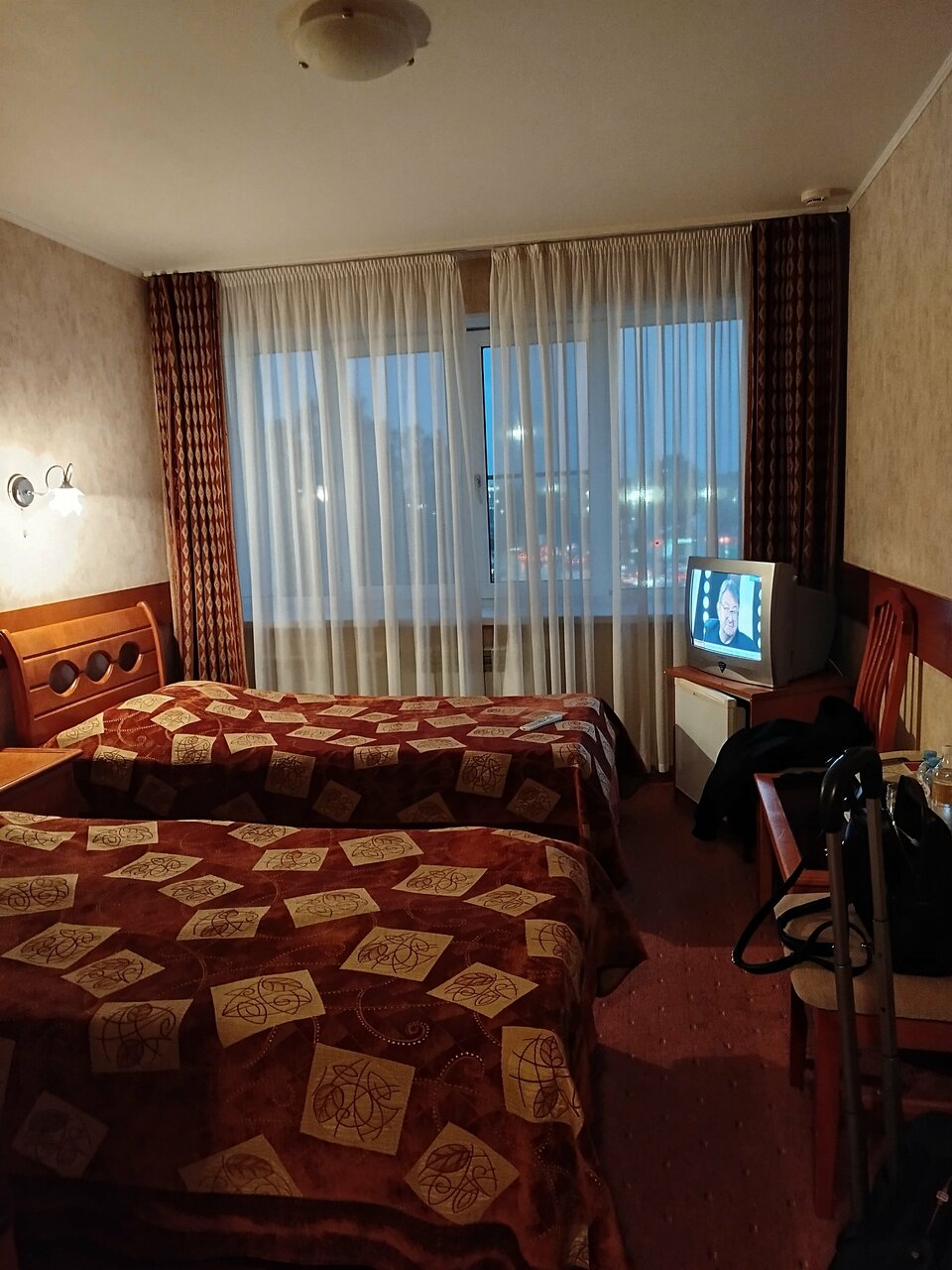 Хорошо отремонтированная гостиница, в окнах москитные сетки, номера открываются пластиковой картой, которые для удобства выдаются на каждого постояльца. Мы снимали 2-хместный ‘Стандарт’ на 6-м этаже. В санузле всё чисто, есть фен, щётки для одежды. Сейчас октябрь, батареи раскалённые. На этаже есть кулер, в номере: 2 стакана, 2 чашки, 2 чайных ложки, холодильник, кондиционер, ТВ, 6 плечиков для одежды. На каждые сутки выдаются: маленькое мыльце, гель для мытья, чай, сахарти бутылочка воды. До и после заселения на некоторое время можно оставить багаж в бесплатной камере хранения. На ресепшене и в кафе на 10-м этаже есть микроволновки. Кафе работает с 10 до 22, поэтому погреть еду лучше приходить до 21.30. В последний час много посетителей. В номере есть тамбур, закрывающийся от комнаты дверью, поэтому спать можно в тишине. С дорог доносится обыкновенный городской транспортный шум. Железная дорога не ощущается. Всё понравилось.