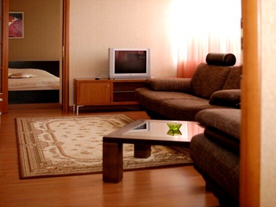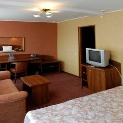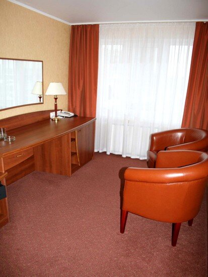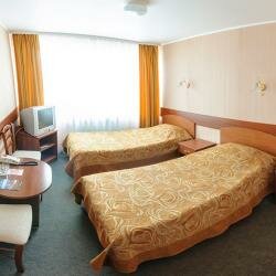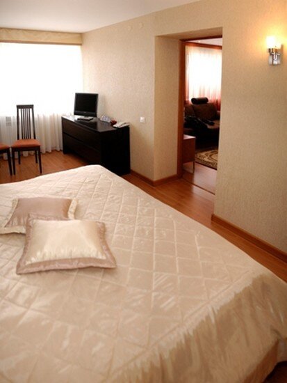 Снимали в гостинице номер. Очень понравилось. Номер большой, чистый. Огромная 2-х спальная кровать. Всё чистенько. Расположение гостиницы удобное, возле ж/д вокзала. Хотя в принципе мы на машине были. Большая парковка перед гостиницей. Завтрак включён в стоимость номера. Завтрак очень хороший. Шведский стол. Нашлись от пуза, как говорится. Очень вкусные блинчики были. Девочки администраторы всё рассказали, что да как в городе. Посоветовали куда сходить, что посмотреть. Хотя и своя культурная программа была. Вообщем — РЕКОМЕНДУЮ!!!