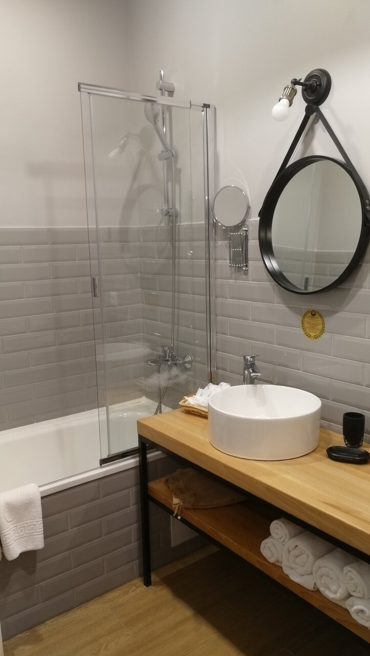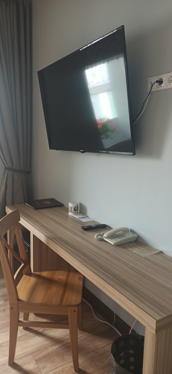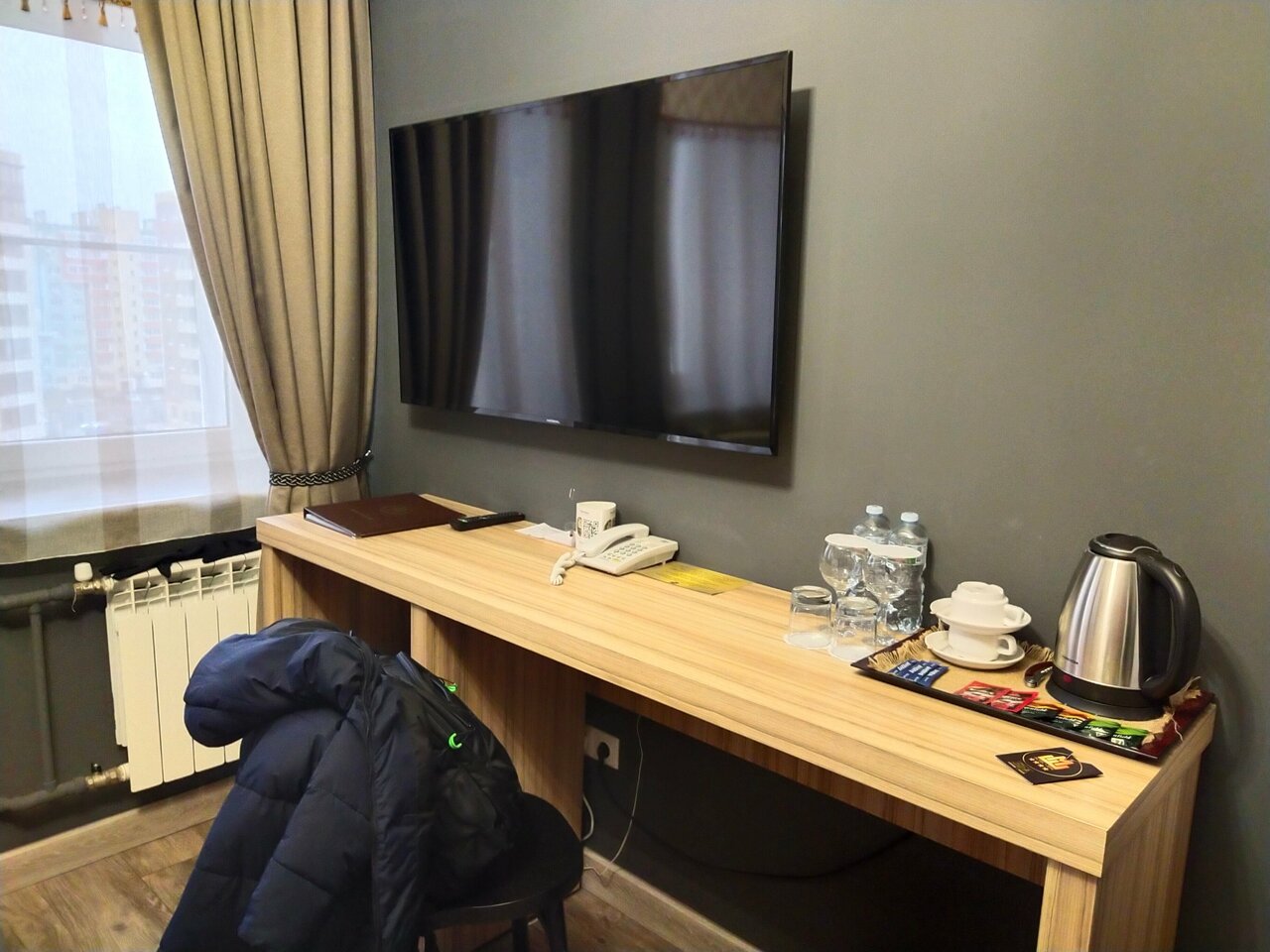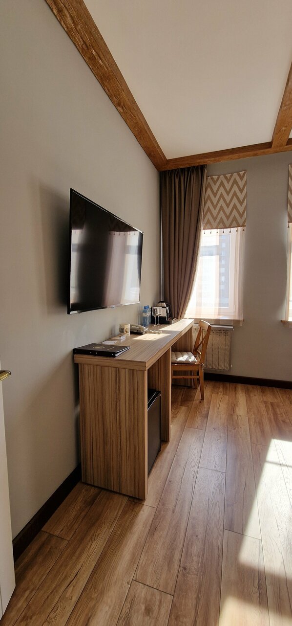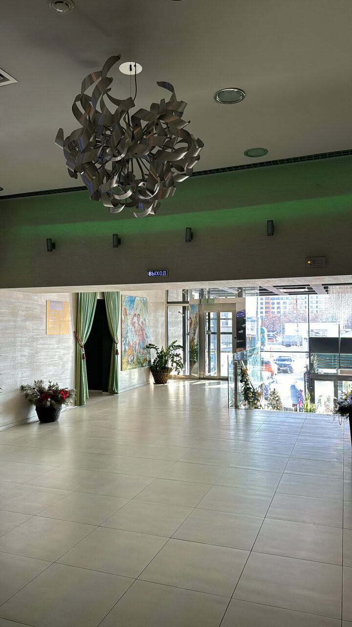 Отличный комфортный просторный номер, всё в наличии: чайник, посуда, чай, кофе, гигиенические наборы, халаты. В гостинице есть лифт, тренажерный зал (с групповыми занятиями!), прекрасны бассейн, курительные комнаты, ресторан. Красивы дизайн. Вежливый персонал: провели по отелю, все показали-рассказали. Порадовало, что позволили оставить вещи на время после выселения. Рядом ТЦ, кинотеатр, парковка. По расположению не особо центр, но это, пожалуй, единственный минус.