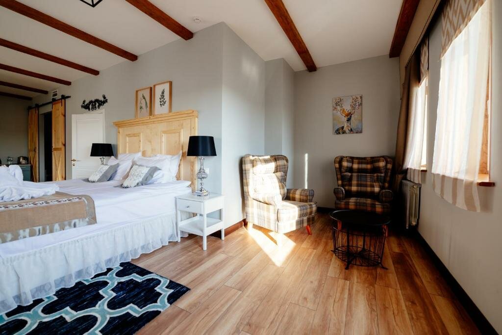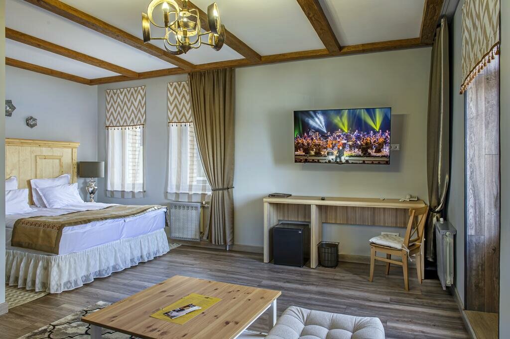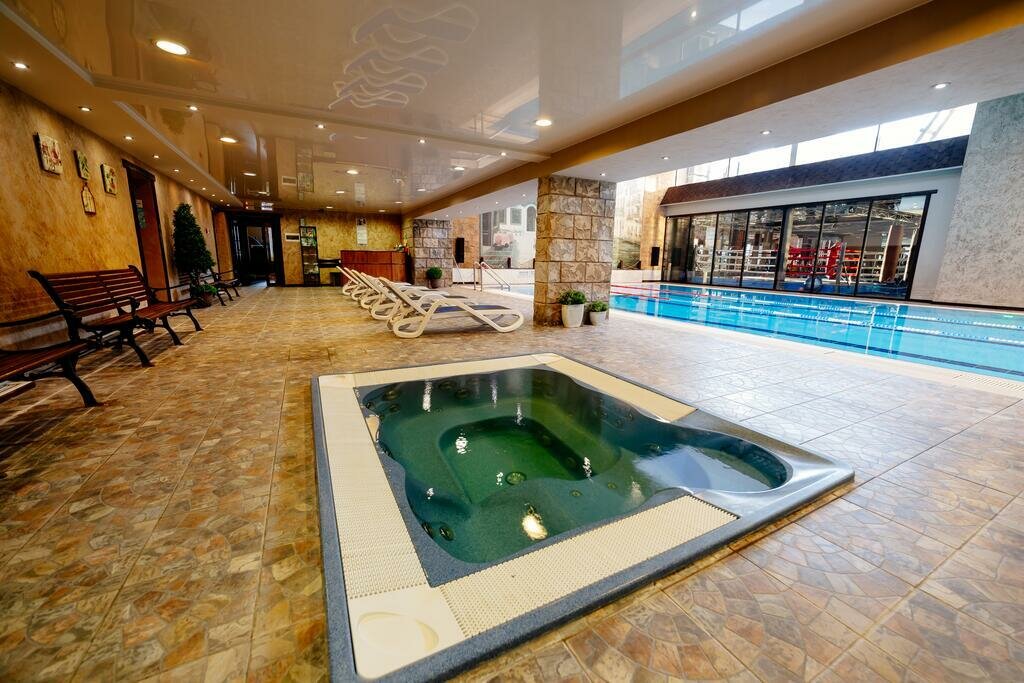 Удобства: — Номера (от 5 000 до 12 000 ₽/ночь) с кондиционером, Wi-Fi, мини-баром, телевизором. — Бассейны (крытый, открытый, сезонный), spa-комплекс (хаммам, сауна, джакузи, массаж). — Ресторан, бар, кафе, английский/американский завтрак. — Тренажёрный зал, йога, настольный теннис, детский клуб, конференц-зал. — Парковка, трансфер, прачечная, химчистка.