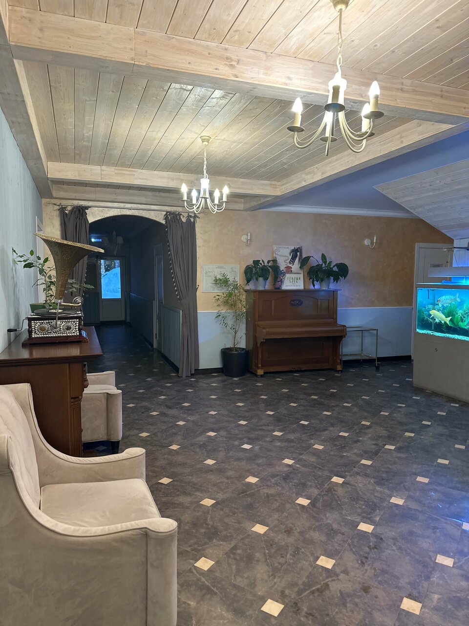 Отель приятный. Приветливый персонал, вкусный ресторан. Номера чистые. Но у нас ночью не было воды, что несколько смутило. И в номерах нет питевой воды, хотя на этаже стоит кулер. В отеле есть бассейн и сауна Мы приезжали большой компанией, нас очень быстро расселили и подготовили для нас столик в ресторане. А так же забронировали для нас сауну на вечер. Ещё из плюсов рядом сосны и свежий воздух. Из минусов ужасная шумоизоляция.