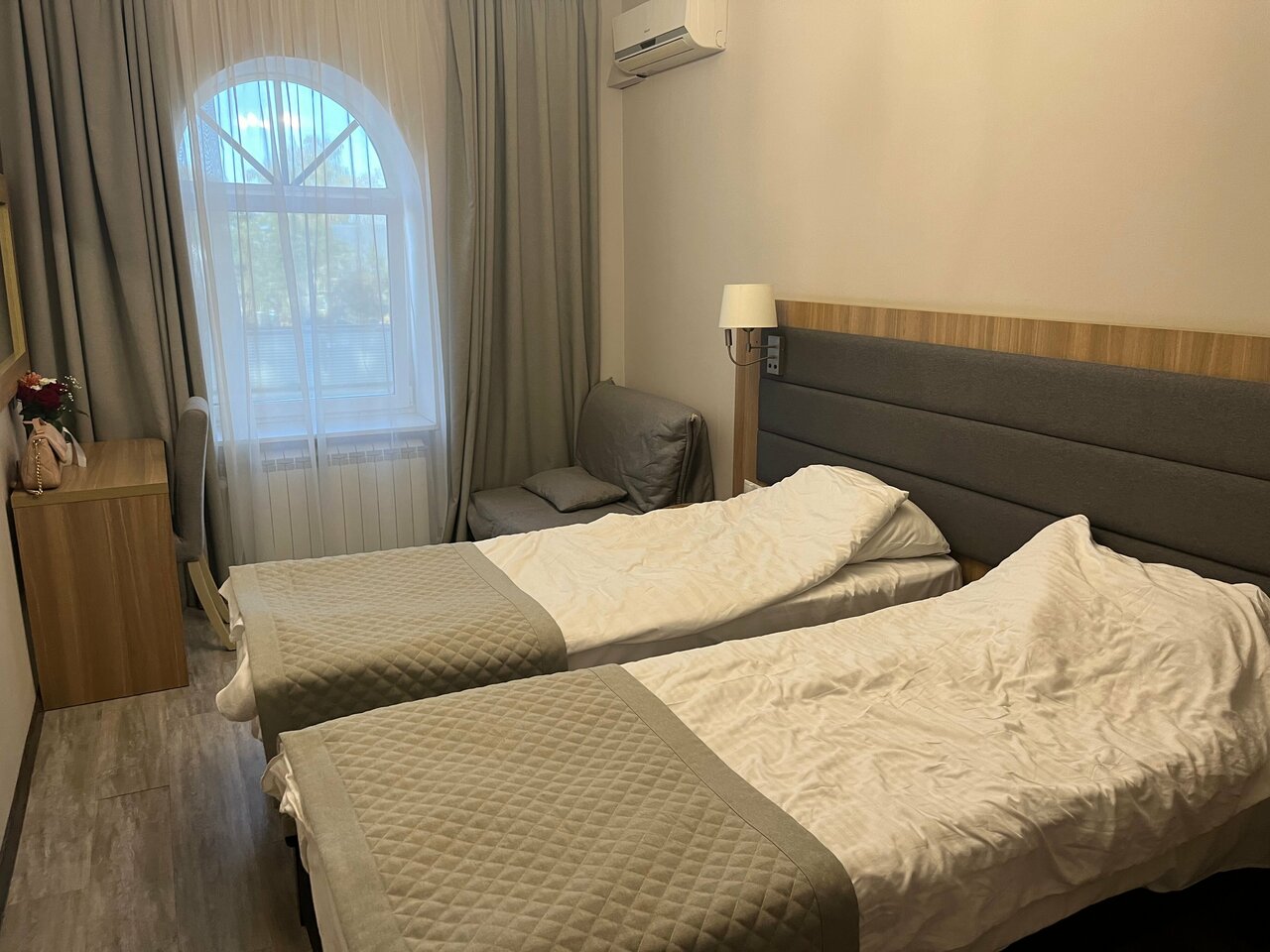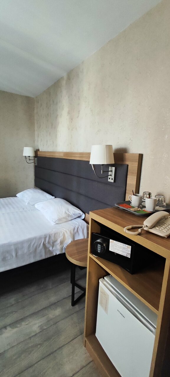 Предоставленный номер полностью не соответствовал фотографиям на сайте бронирования. Очень грязный, везде волосы, на полу, на мебели, на постельном белье. Окна маленькие, грязные, выходят в страшенный внутренний двор. Мебель конкретно уставшая. Телевизор и душевая кабина просто не работают. Крайне не рекомендую данный отель.