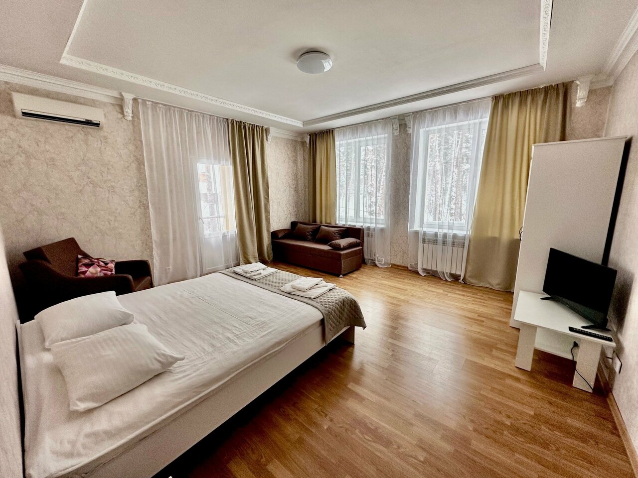 - Чистые, аккуратные номера с качественной мебелью (в люксе – массив, позолоченная сантехника).