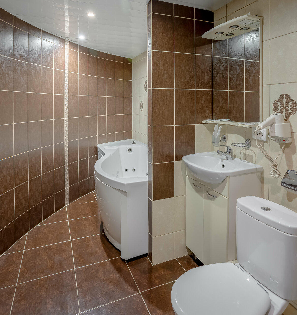 Худшая гостиница, где только не был. Расположена в торговом цетре, или торговый центр расположен в гостинице. Забронированный номер не оказался свободен, придумали проблему с прорывом трубы. Взамен предложили скидку 30 процентов на следующий визит, а будет ли он? Предложили ужин в ресторане, правда завтра, т.к. он уже закрылся в 20 часов. Дали двухкомнатный номер. Чистенько, но как то пусто. Халаты в ванной комнате оба с пятнами, а на втором нет кушака. И окончательно добил завтрак — кофе нет ни в каком виде! Парковка во дворе. Если охрана, или как её еще можно назвать- сторожа — не на месте или говорят по телефону — можно долго жать на кнопку у открытия ворот, сделают вид, что вас не видят и не слвшат. Да и скудненько как то. Будете проезжать — проезжайте мимо.