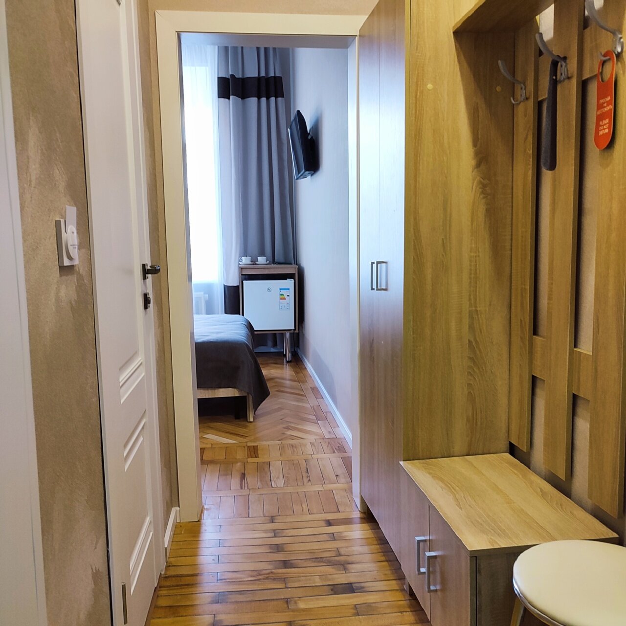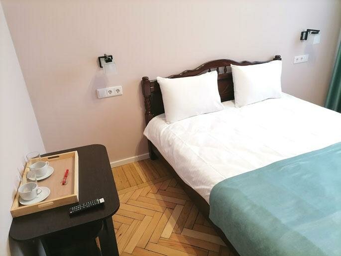Отличная гостиница! Практически в центре, все рядом и в то же время тихо. Останавливались в полулюксе № 18. Санузел чистый, все новое, полотенца, шампуни и т. д., все в наличии. Гостиница находится в историческом здании. Боялись, что все старое. Но сделан ремонт, и внутри все супер. И потолки высокие!!! Очень понравилось! Рекомендуем!